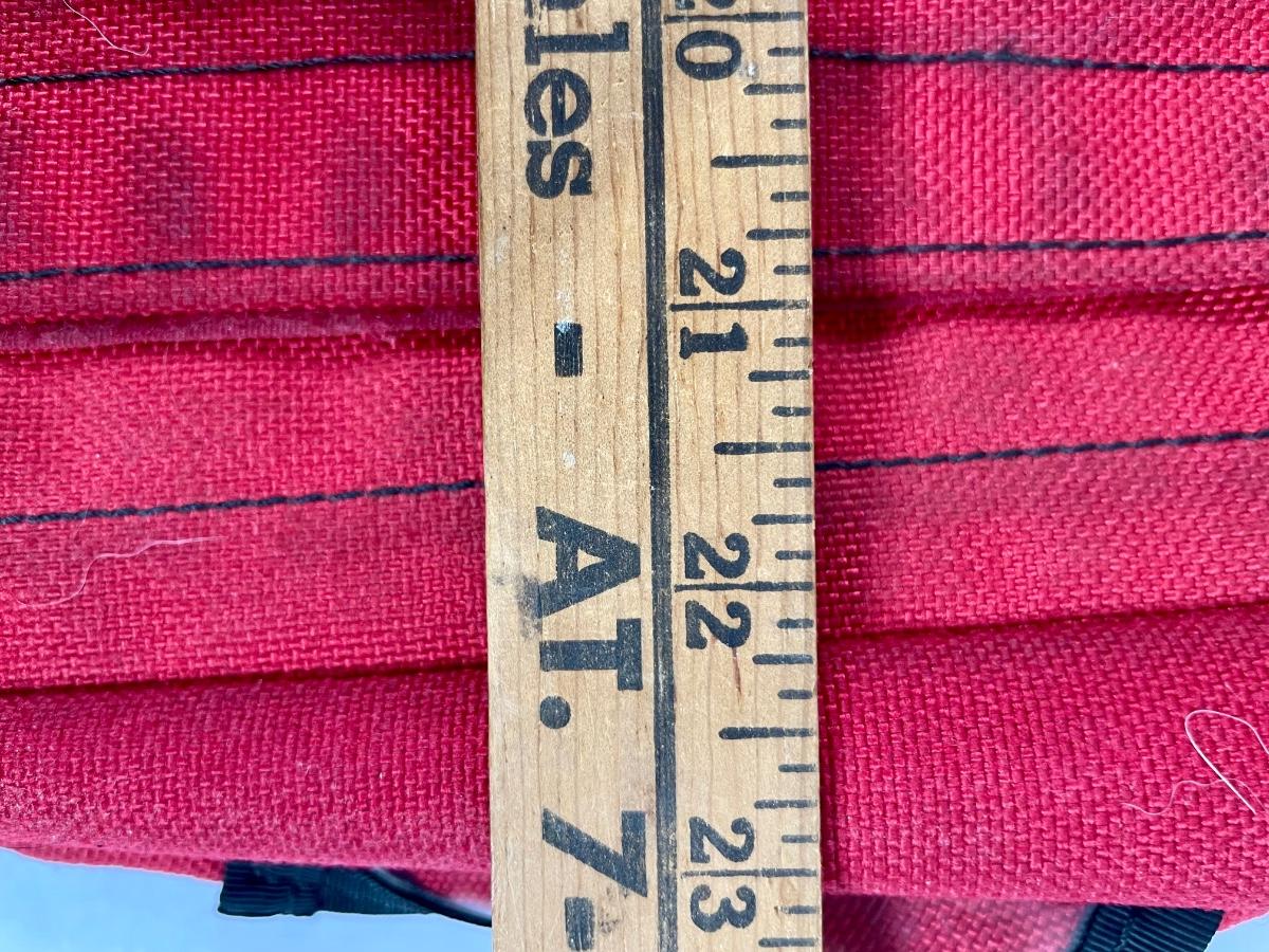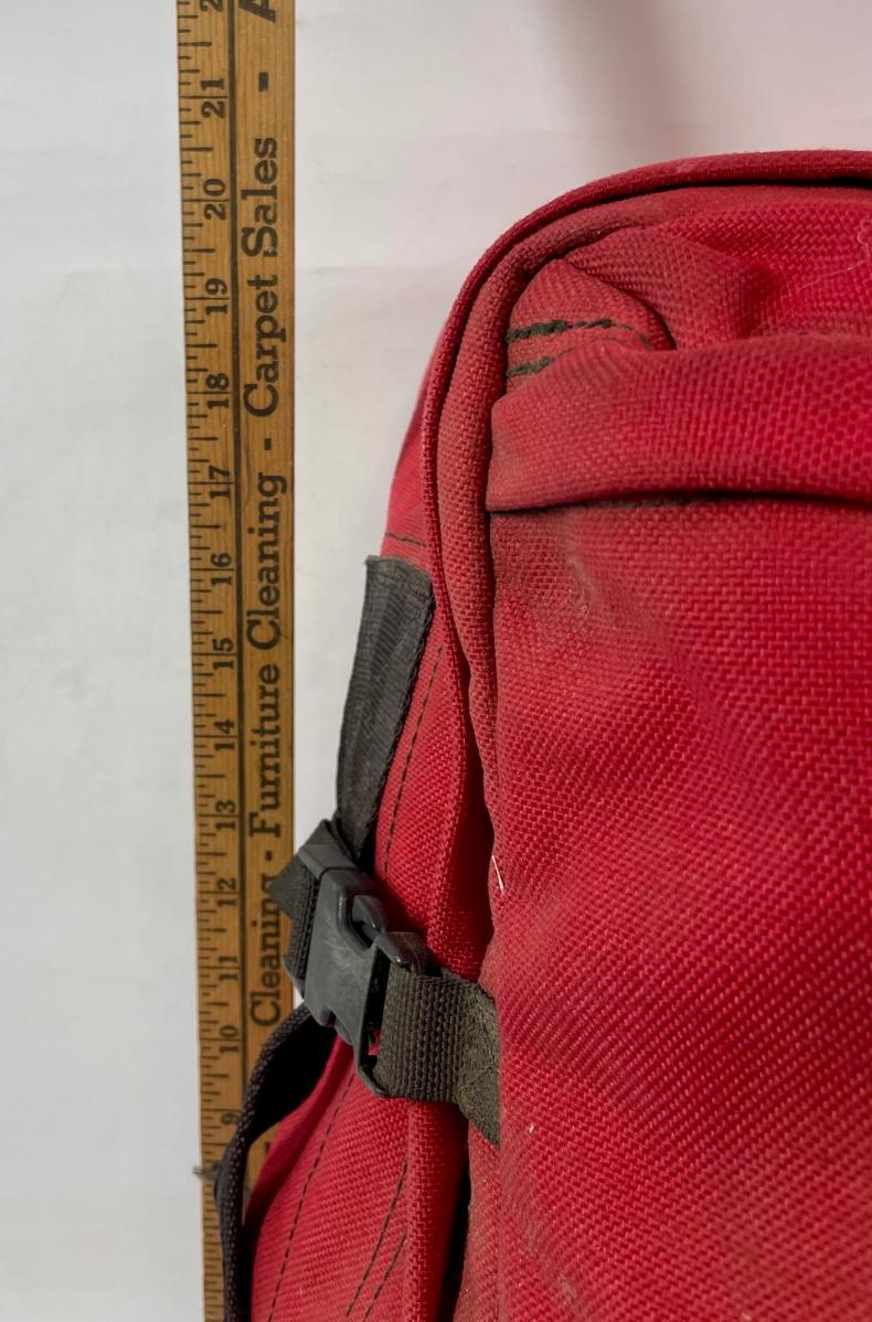 USFS xxxx. Made from heavy ballistic nylon, originally for wildland firefighter’s personal gear but could be adapted to many other uses. Back panel measures 22” x 14” , and is approx 9” deep, so it is sized to fit as carry on luggage on most airlines.