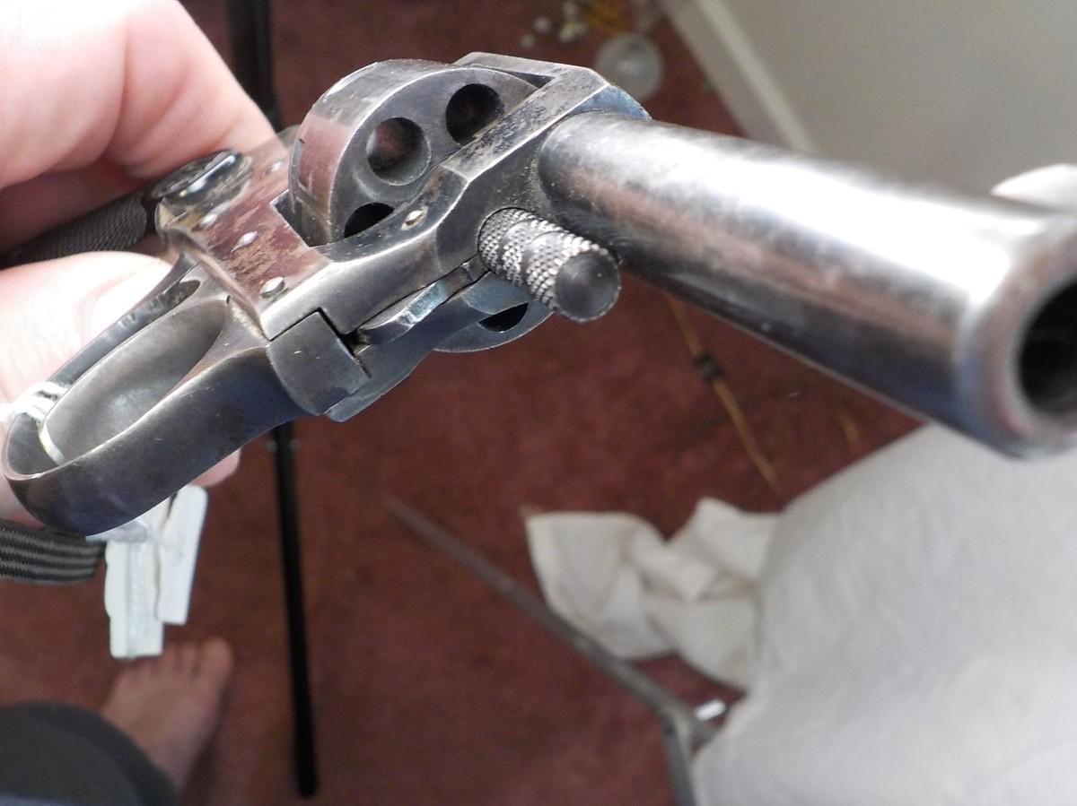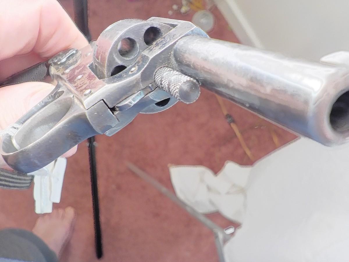 US Arms revolver , grips solid,, bore clean and smooth, action works excellent and locks in cylinder solid.