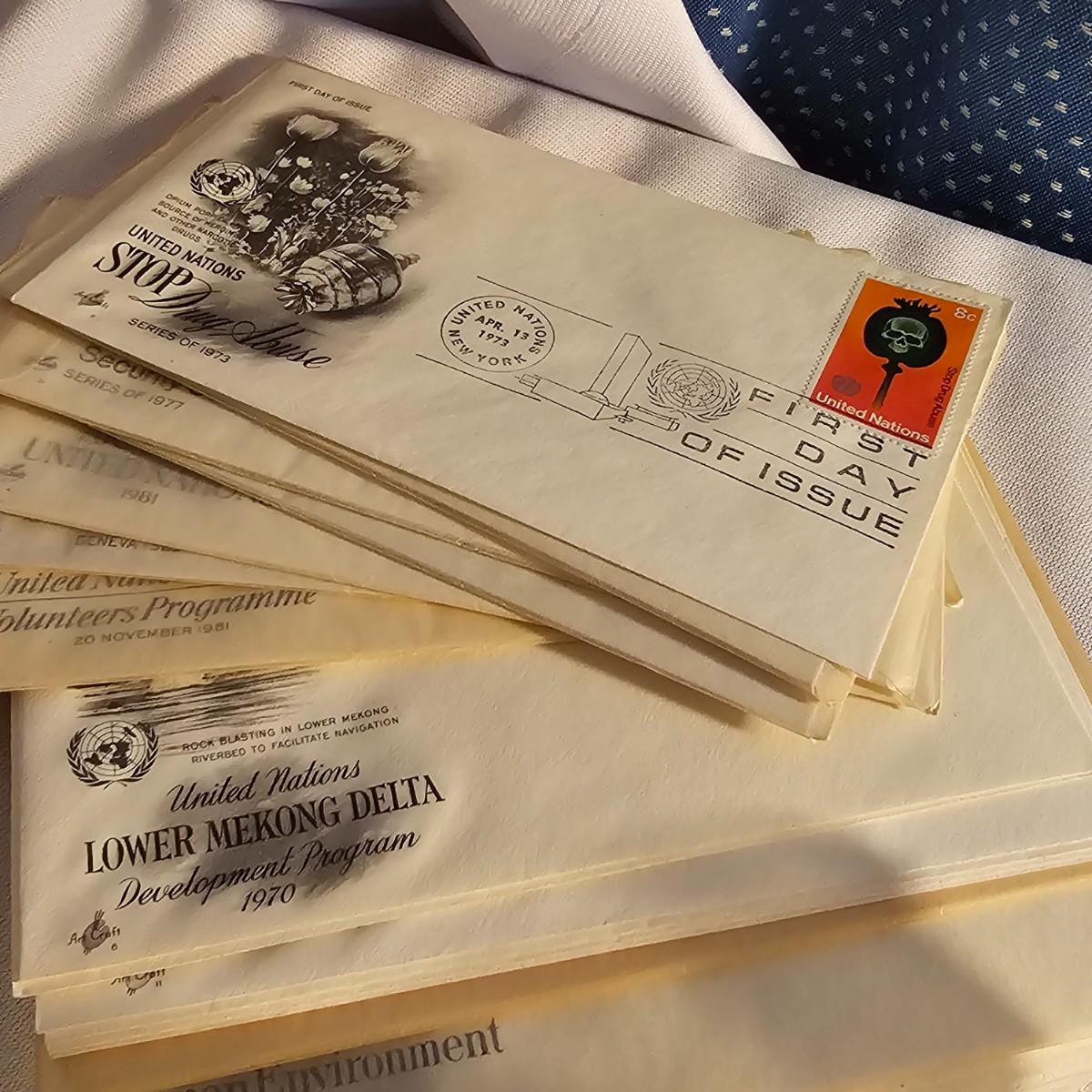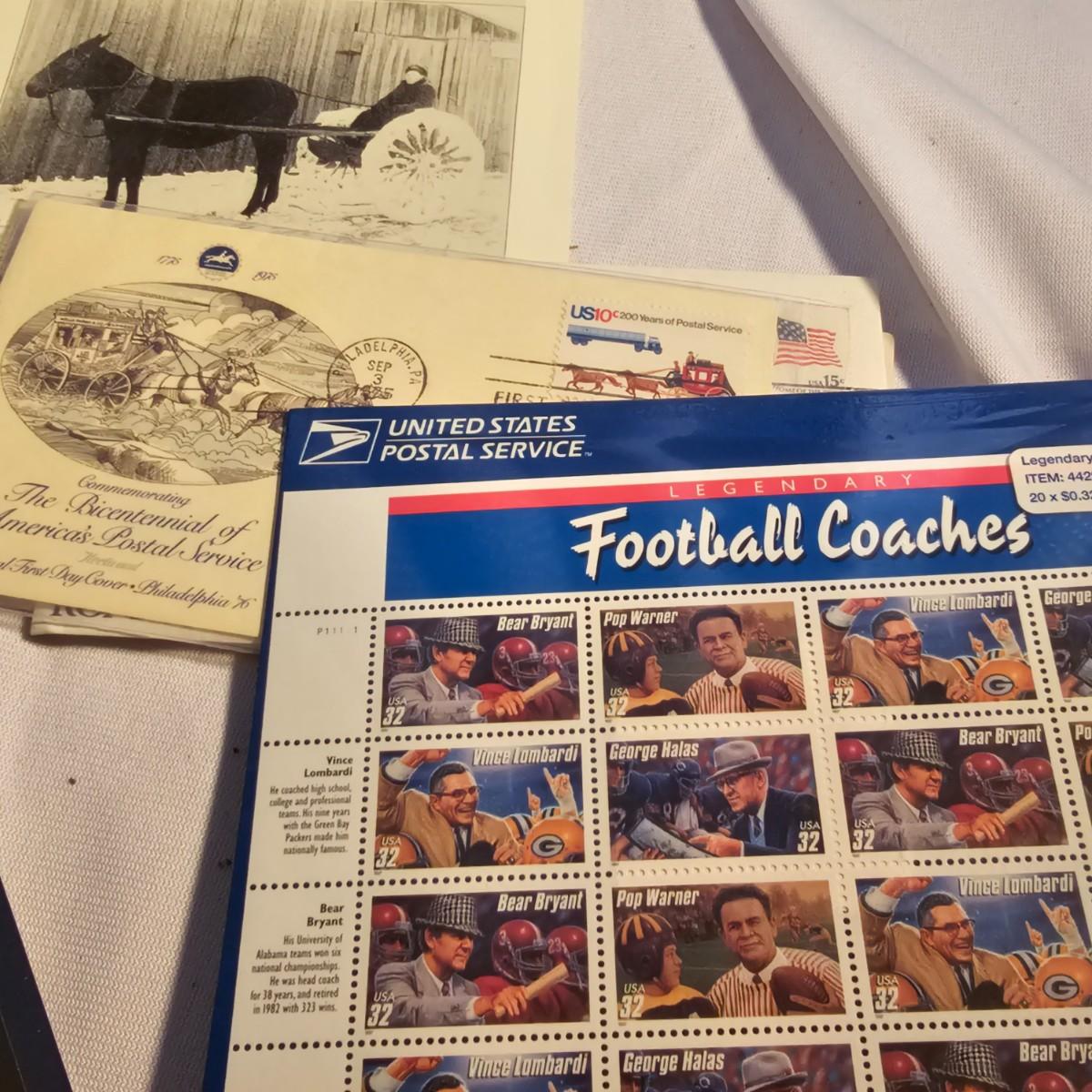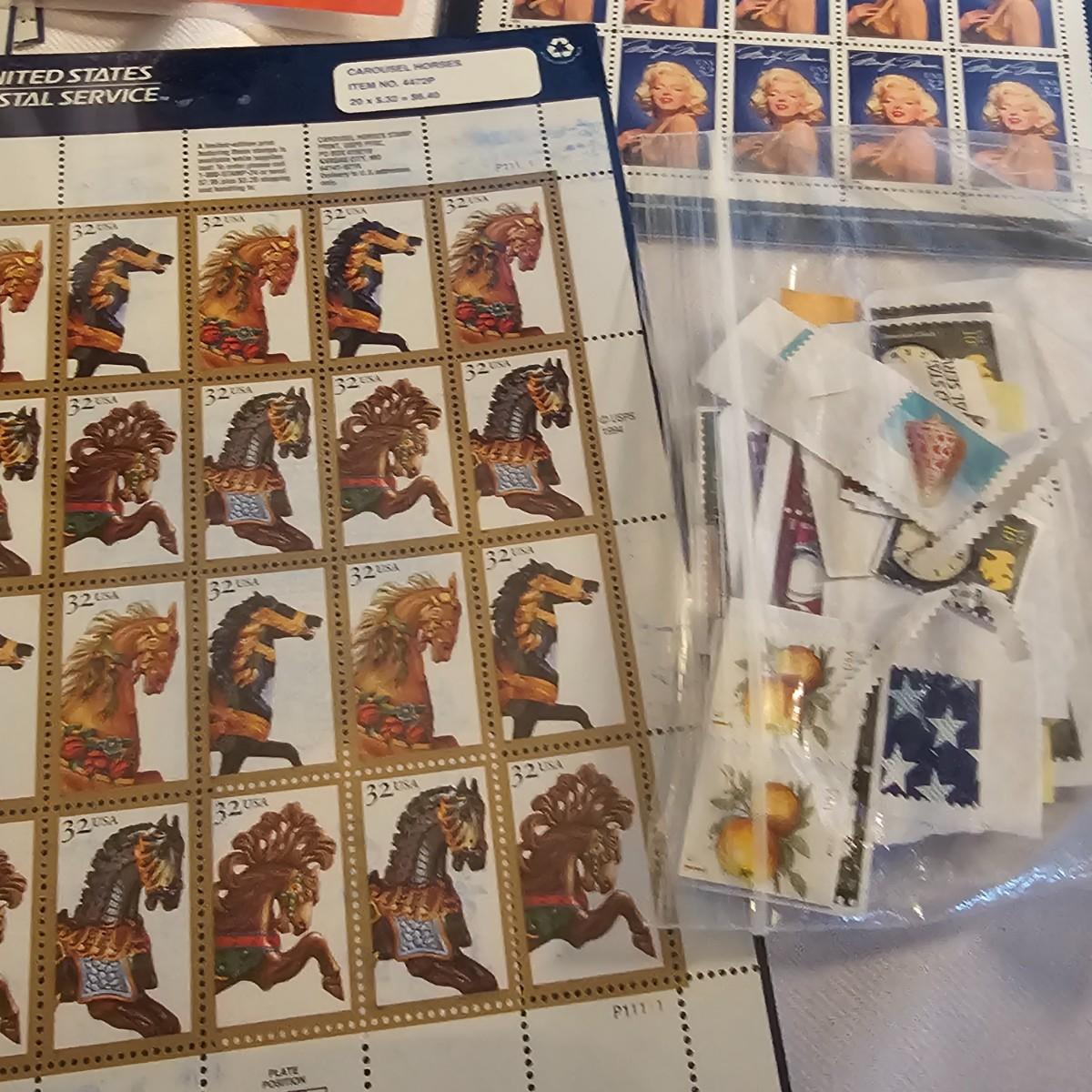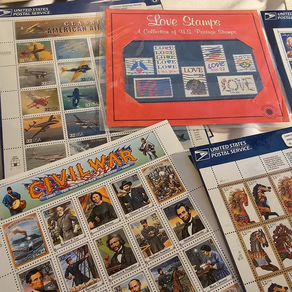 Old, new, in binders, others loose in boxes, there are hundreds of stamps and first day covers in this collection. United Nations series, World War II items, movies, icons ,genres from all over. Too many items to show all, see photos for details. Largest frame measures 9.5” x 12”. Shipping available.