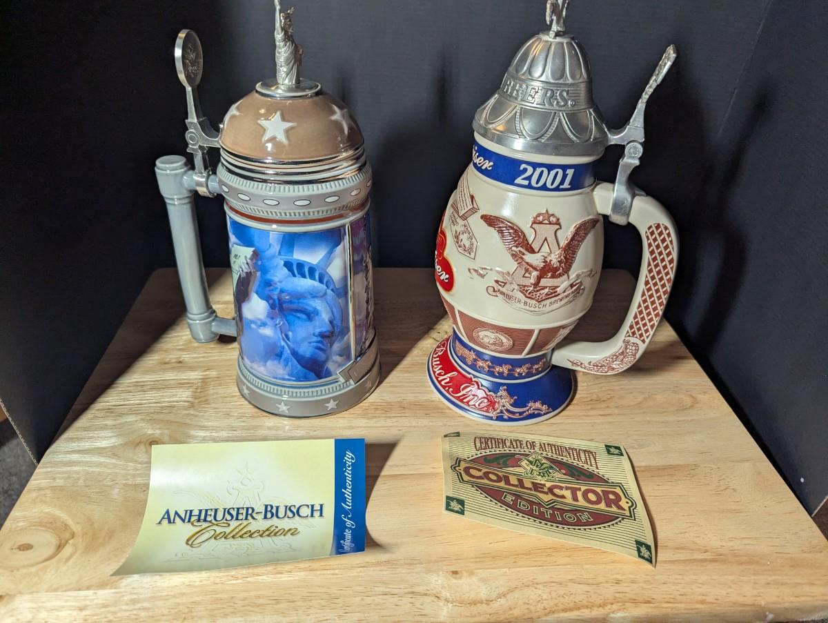 U.S. Landmarks Statue Of Liberty & A Tradition Of Brewing Excellence Steins w/ Boxes
