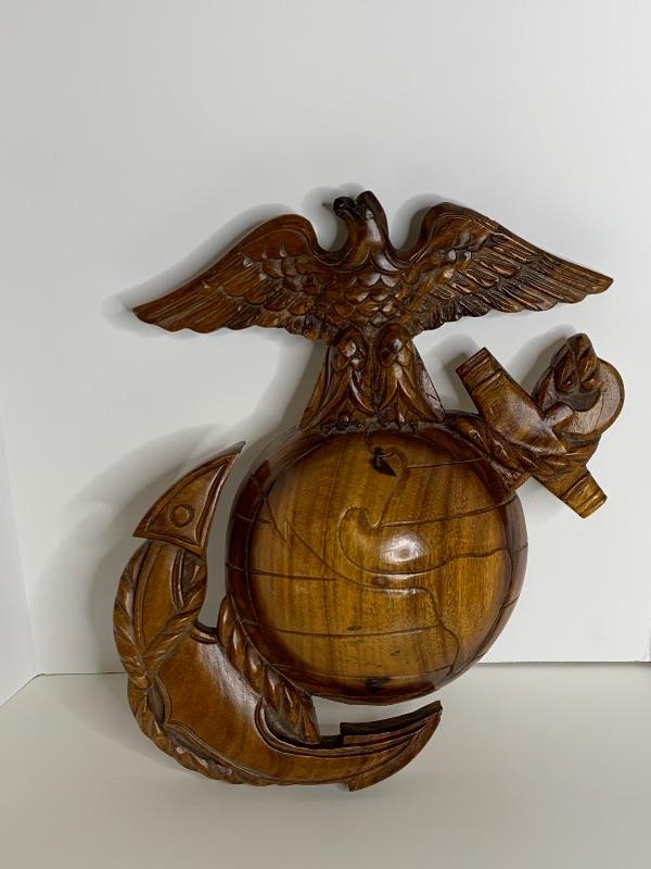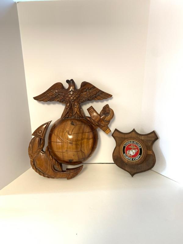 US Marine Corps Plaque and Hardwood USMC Eagle Globe & Anchor