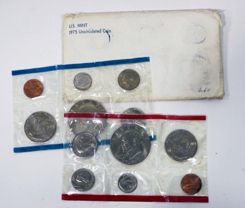Circa 1975 United States Mint Uncirculated Coin Set, includes both Denver and Philadelphia Mint Sets,