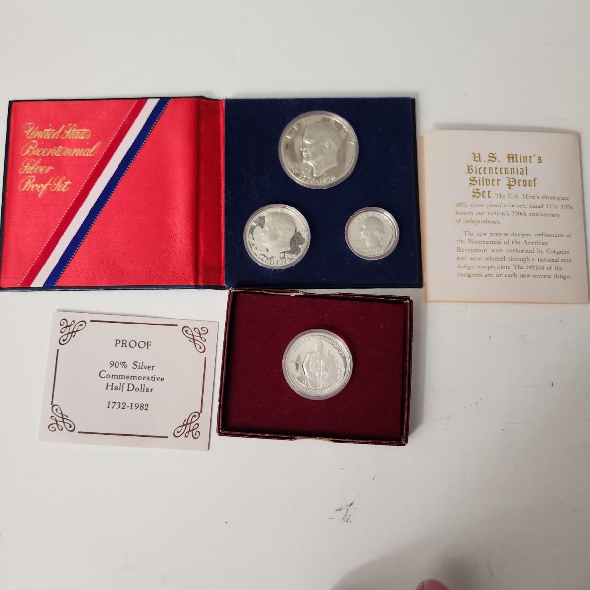 U.S. Mint 1976 Bicentennial Silver Proof Set + 1982 Silver George Washington Half Dollar