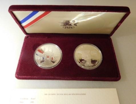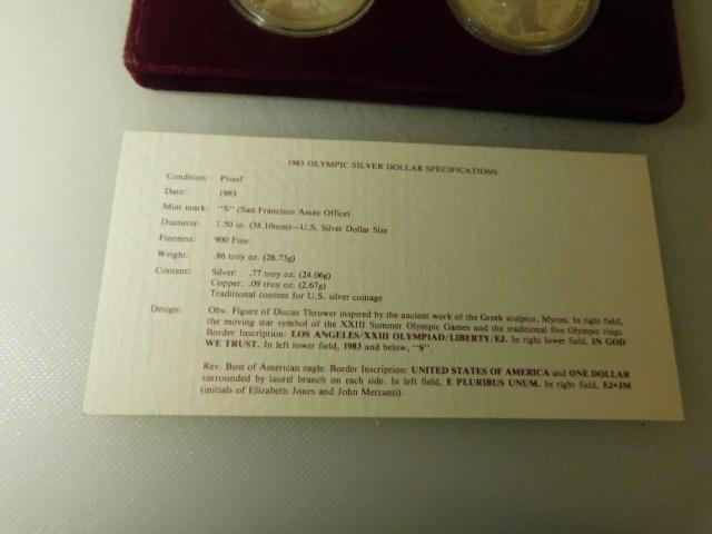US Mint 1983 & 1984 S Proof Olympic Silver Dollar Set in Case with COA