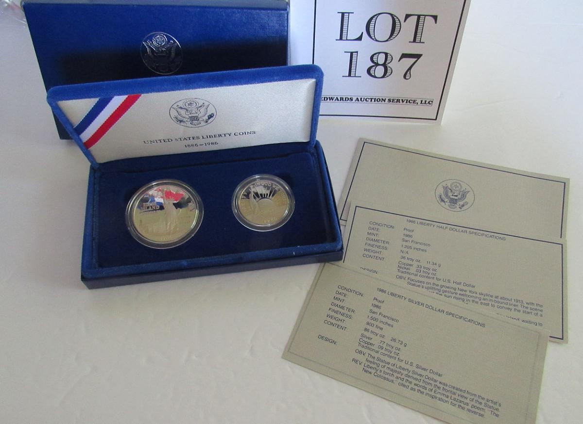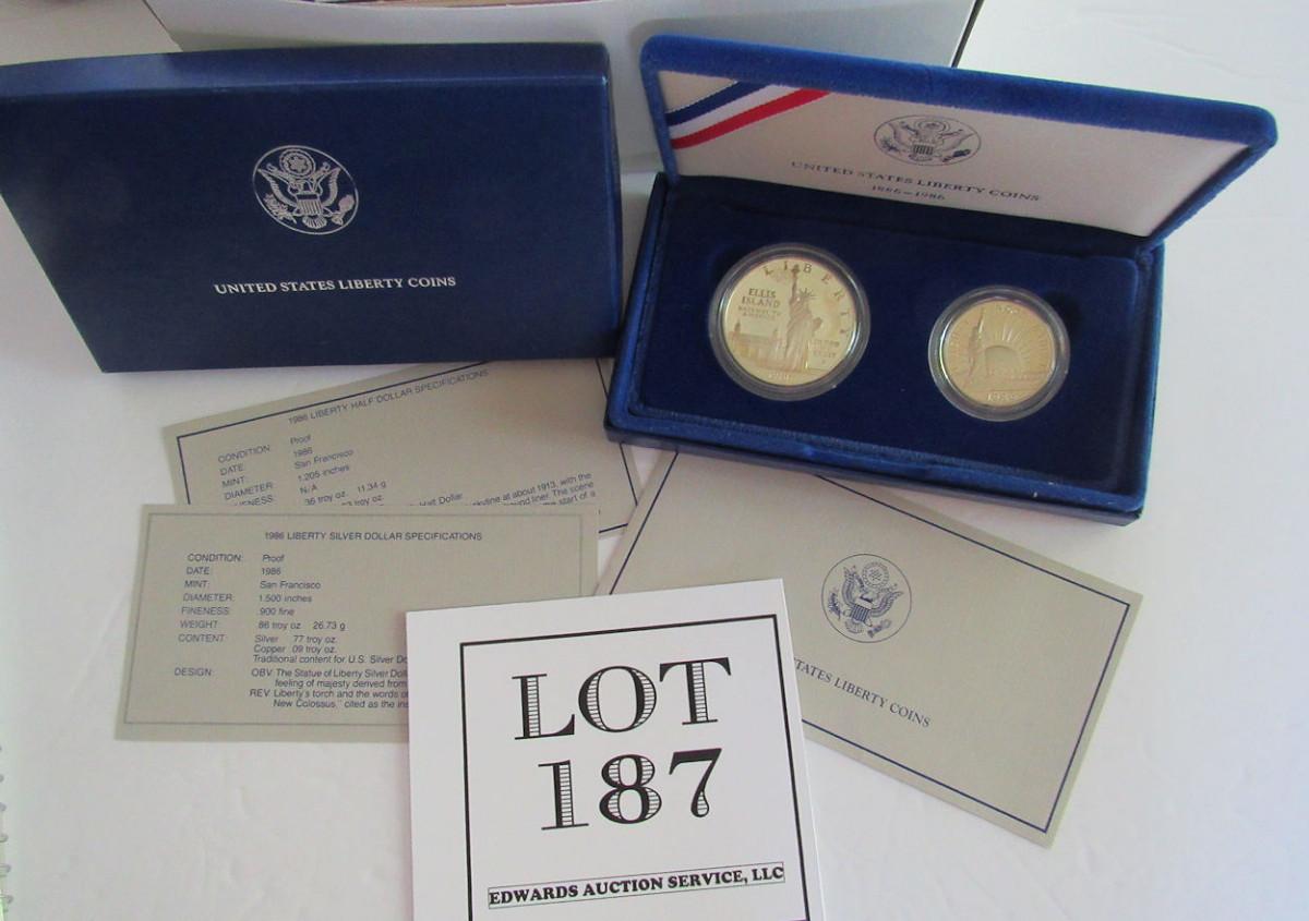 US Mint 1986 S Liberty, Ellis Island Silver Dollar (.77 troy oz), and Clad Half Dollar Proof Set, Never Opened