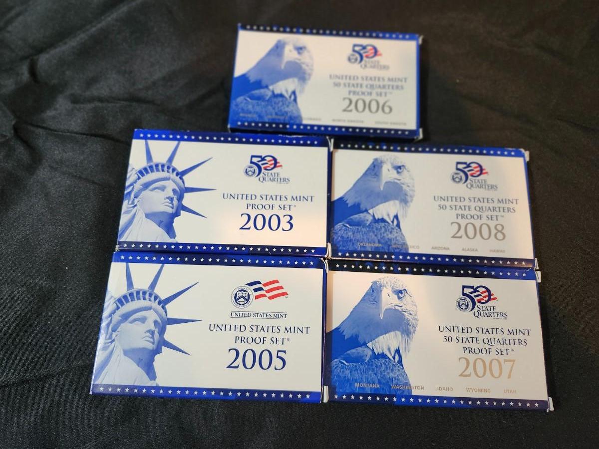U.S. Mint 2003, 2005, 2006, 2007, 2008 US Coin Proof Sets