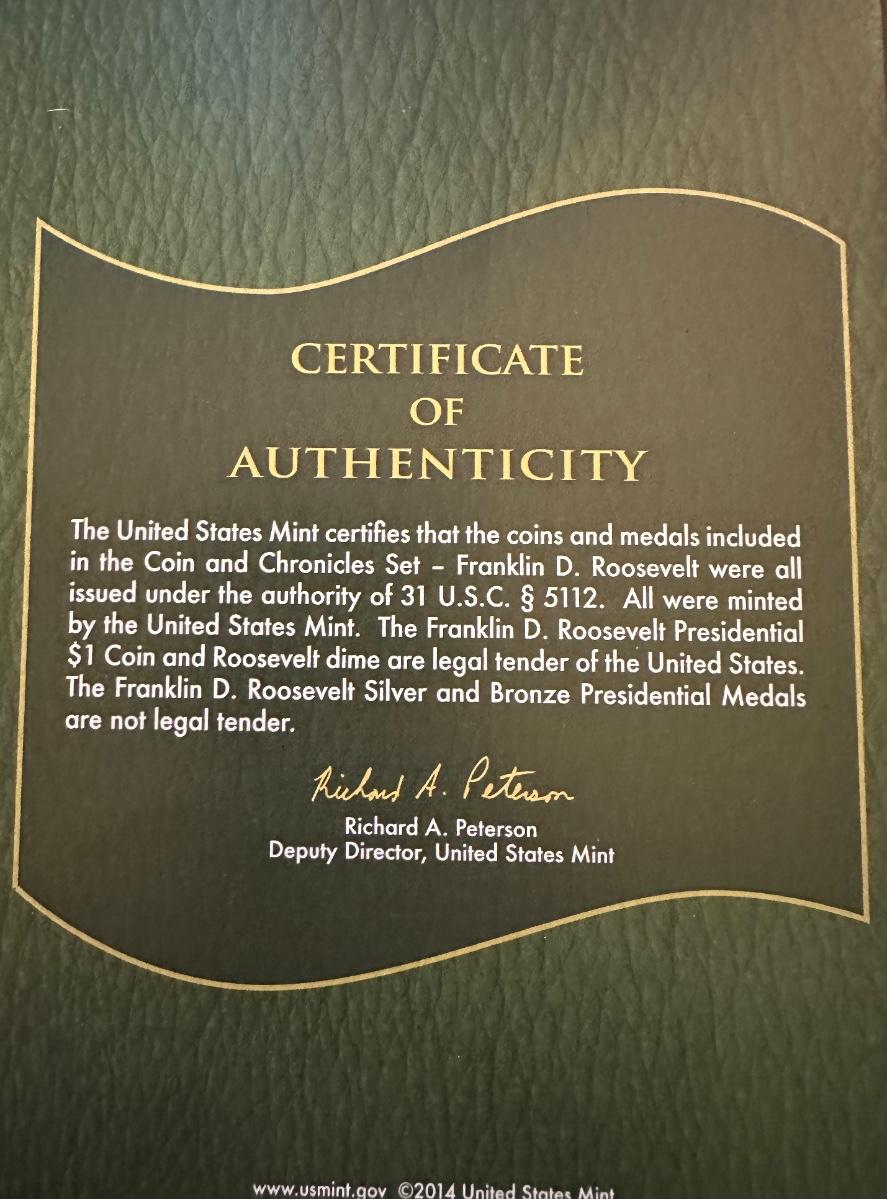 U.S. MINT 2014 COIN & CHRONICLES SET FRANKLIN D. ROOSEVELT