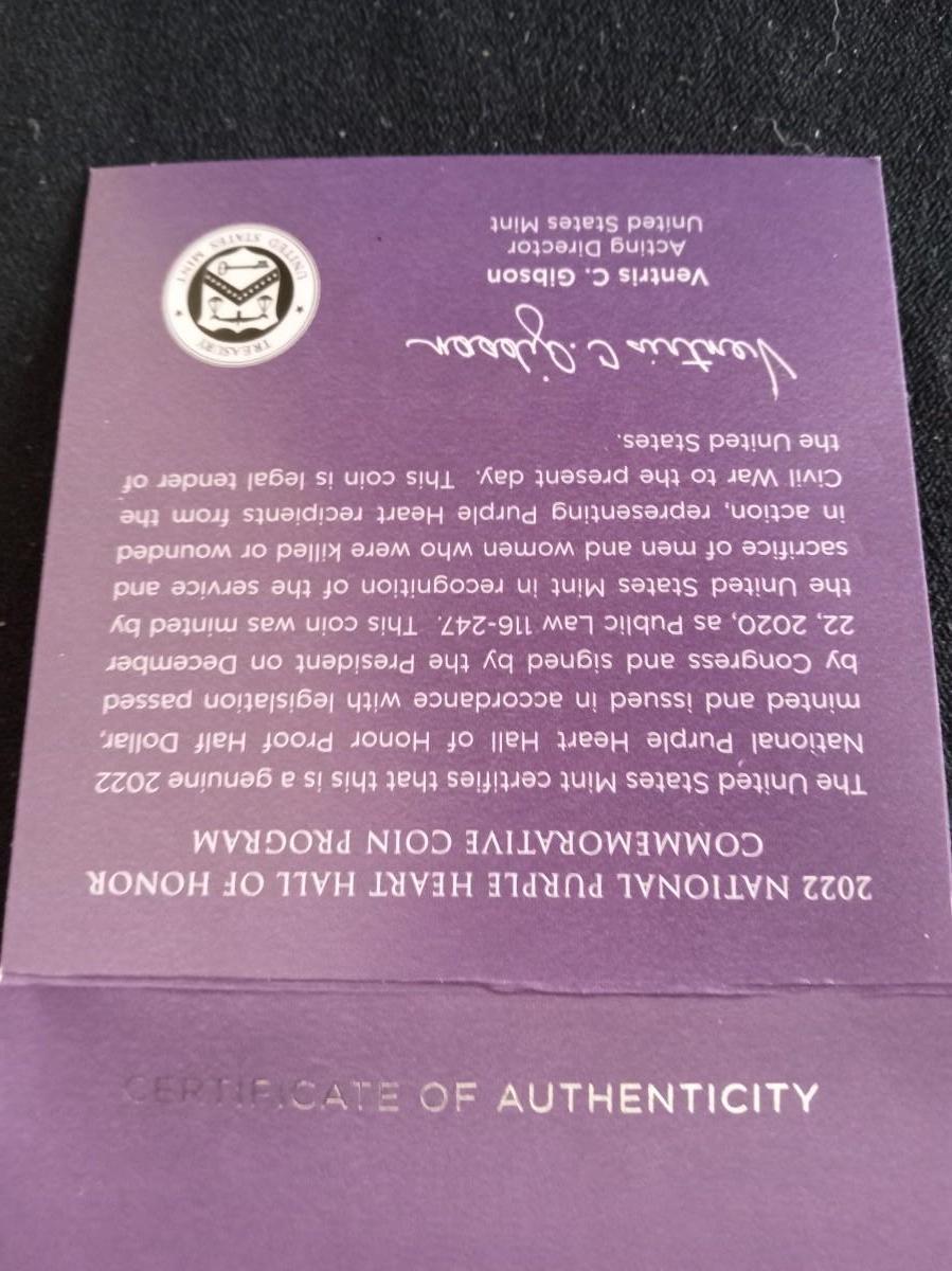 US MINT 2022 NATIONAL PURPLE HEART HALL OF HONOR COMMEMORATIVE UNCIRCULATED CLAD HALF DOLLAR