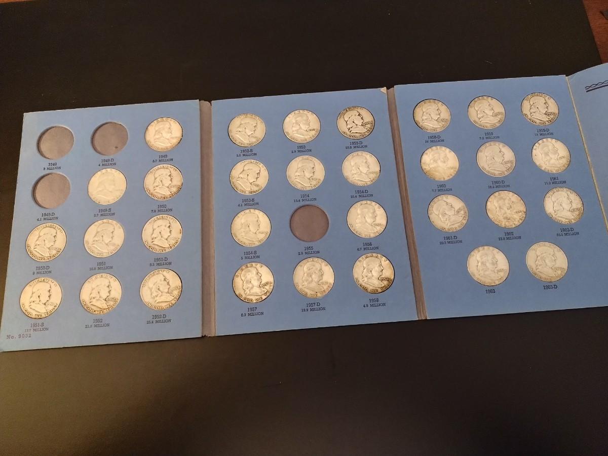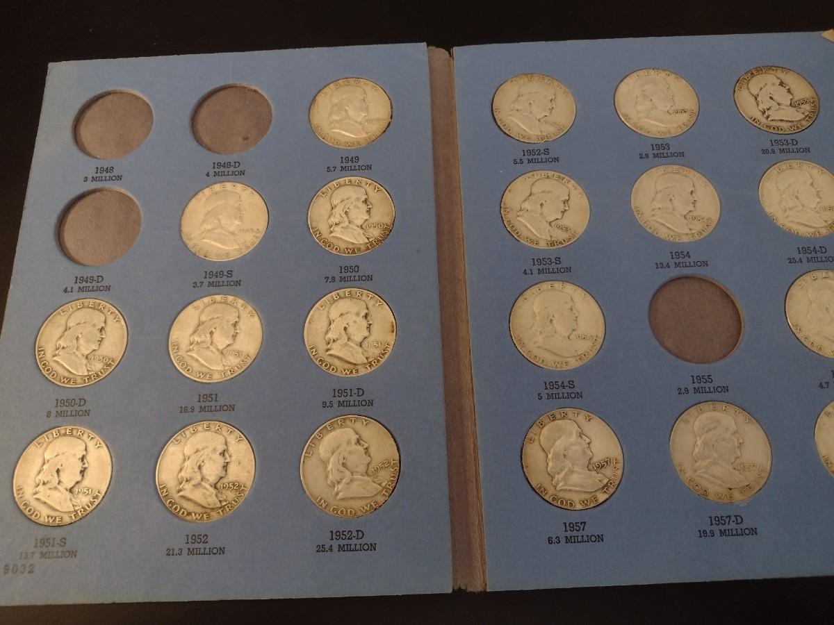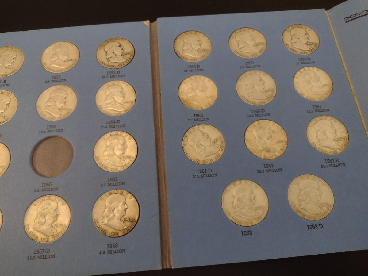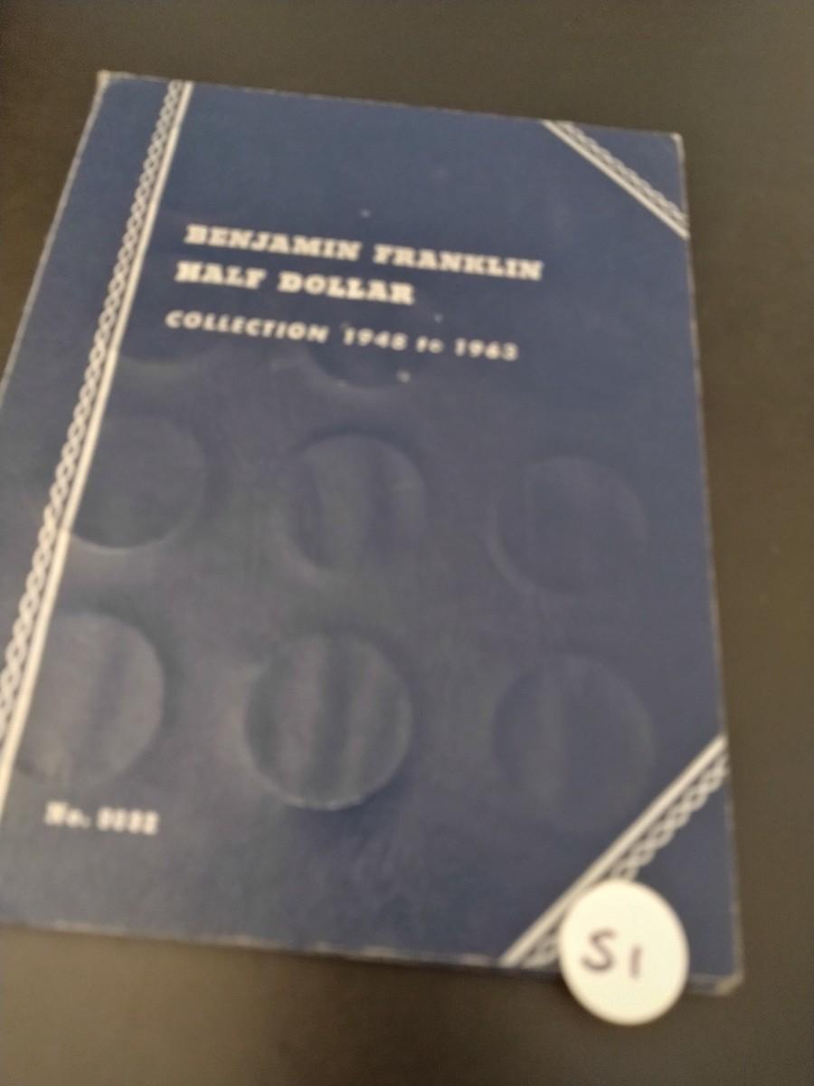 U.S. Mint Benjamin Franklin Silver Half Dollar Collection Book Incomplete Circulated (#51)