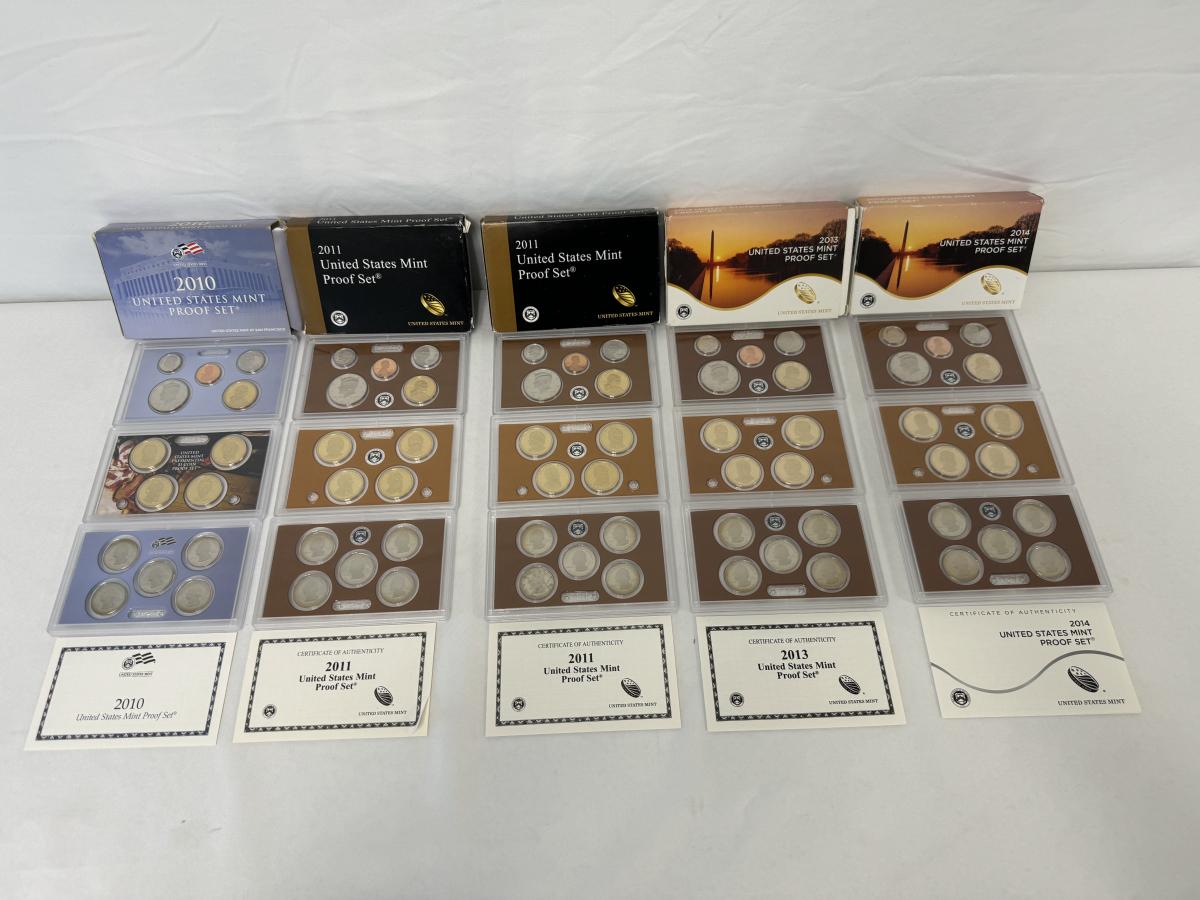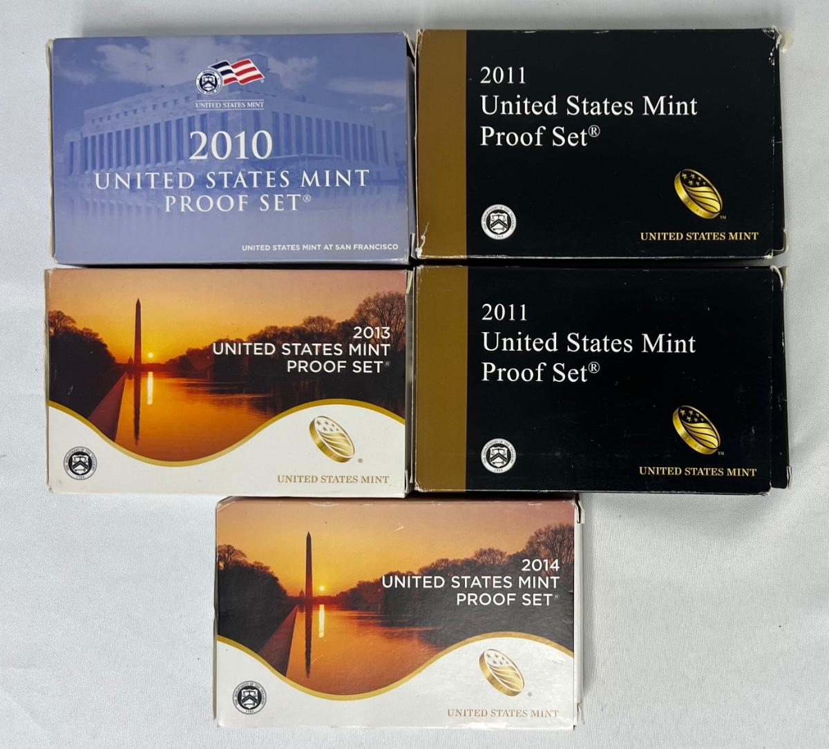 Includes 2010, 2011 (x2), 2013, and 2014. Total of 5 sets. Shipping dimensions: 5" x 5.5" x 3.5". [LA]