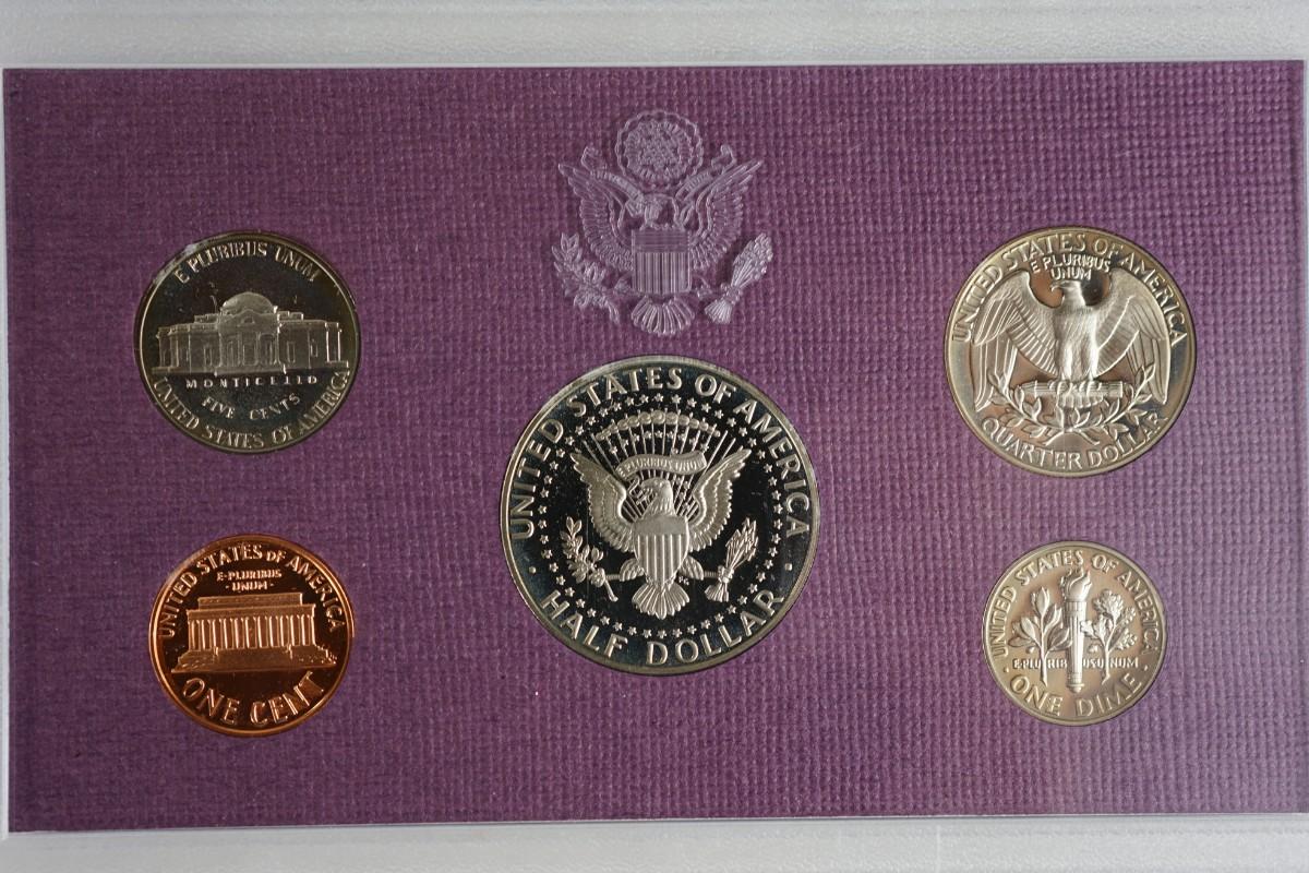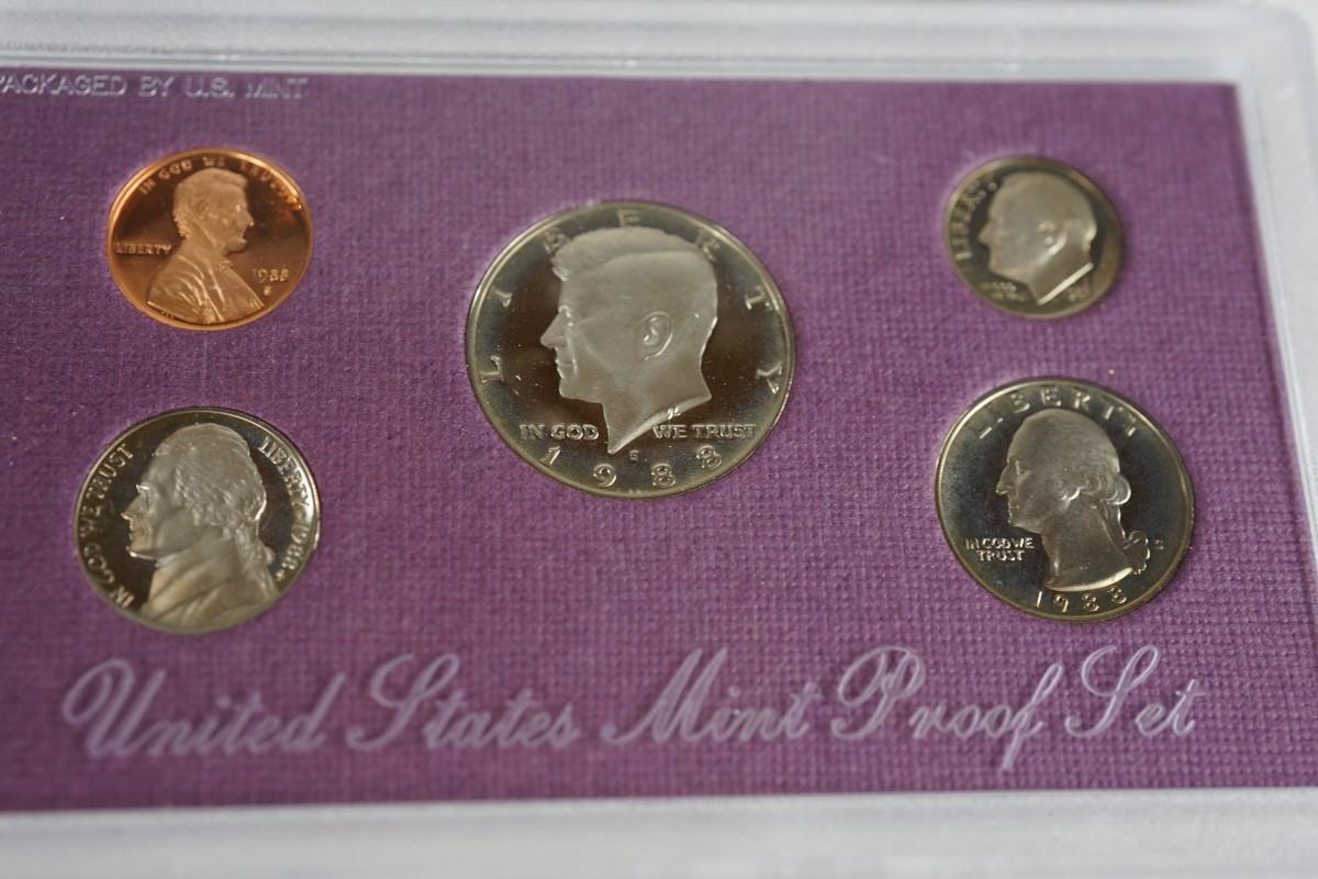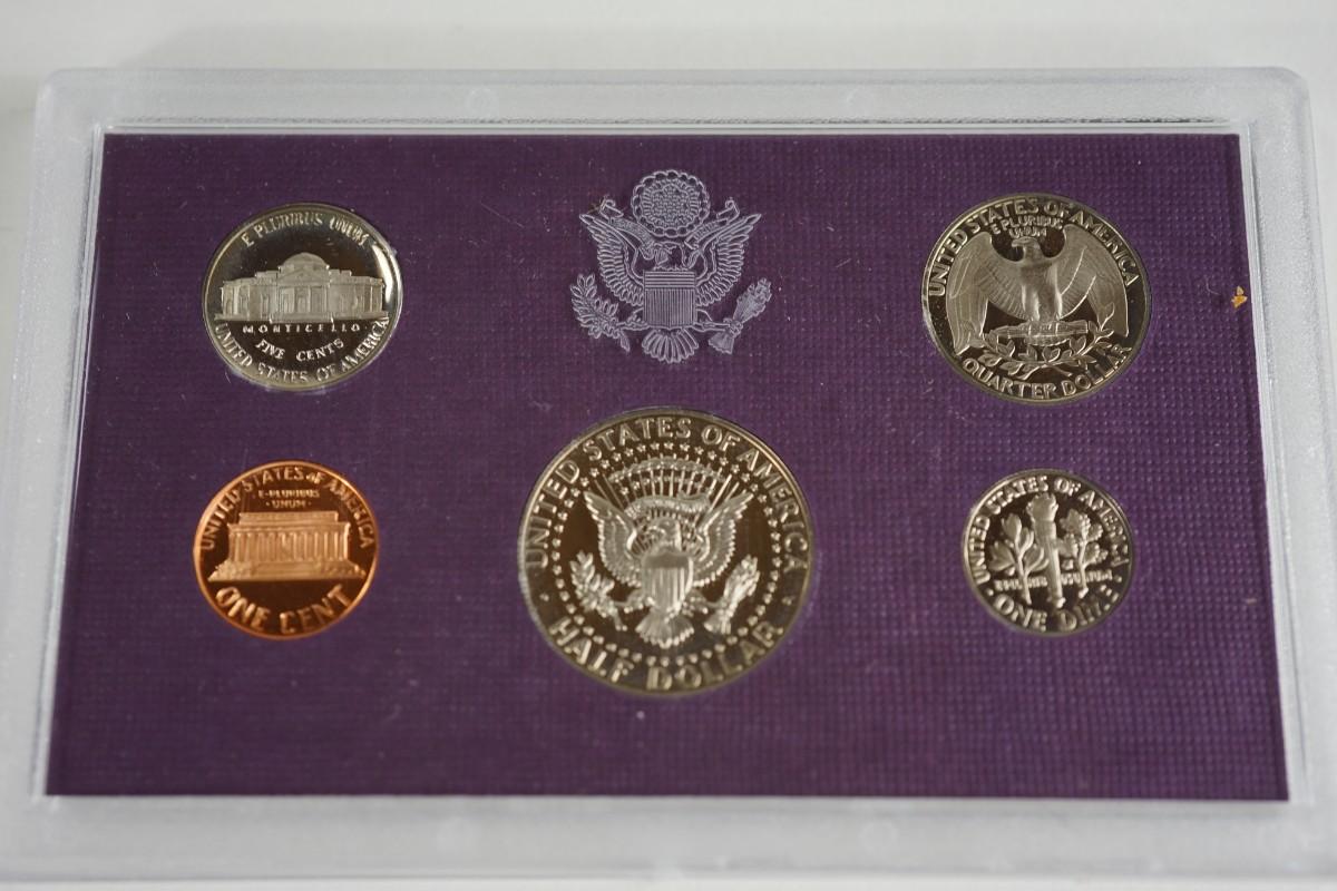 years of five coins 1986, 1987, 1988( noted some fog on the interior of the plastic for the Kennedy half dollar)1989, 1990, 1991,1992,1993
