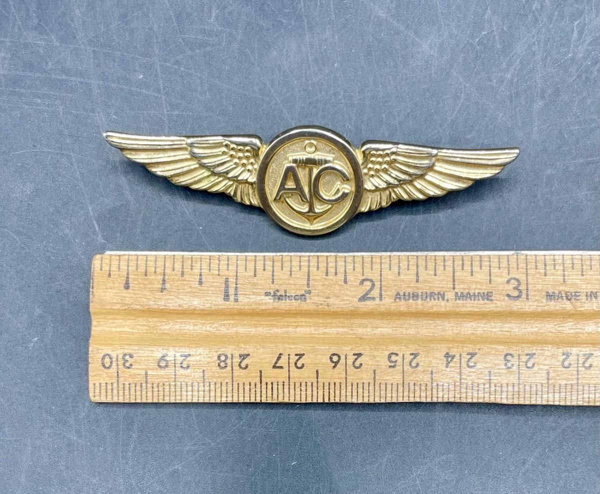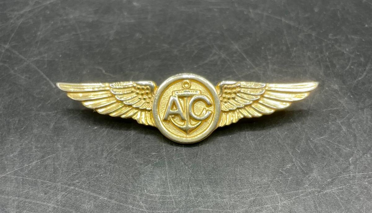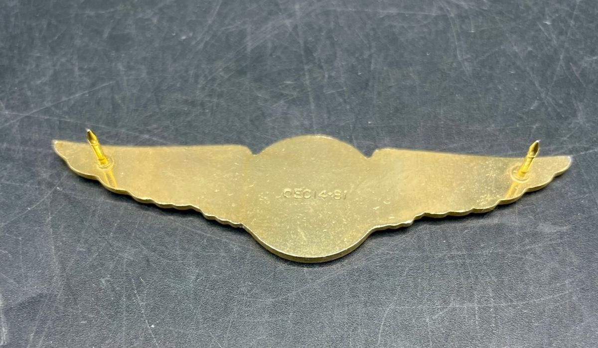 Bright, polished gold tone metal pin-on wings. In very good condition.