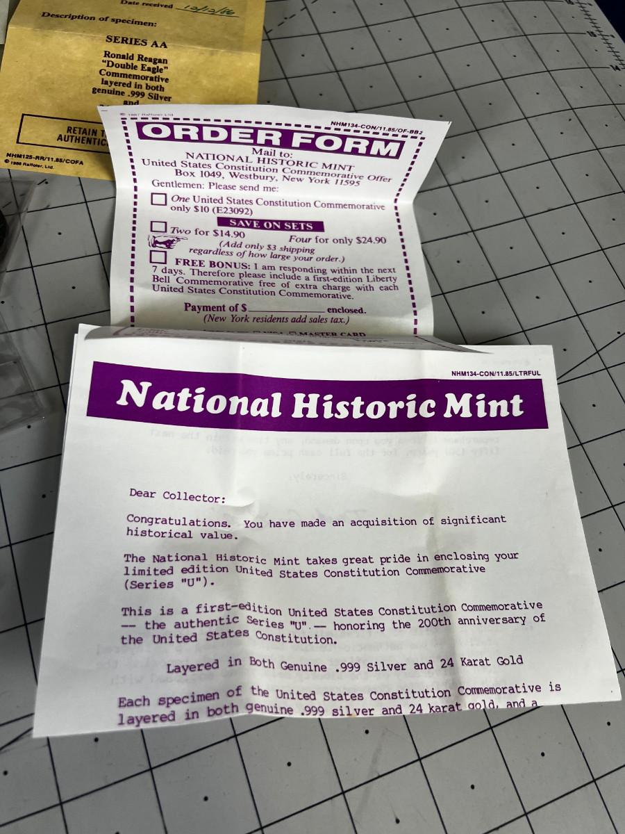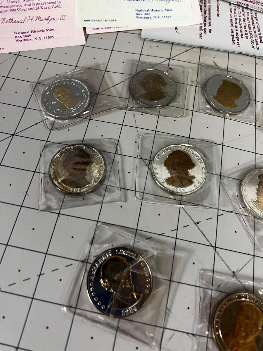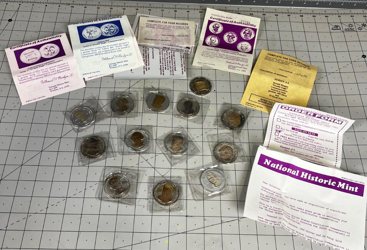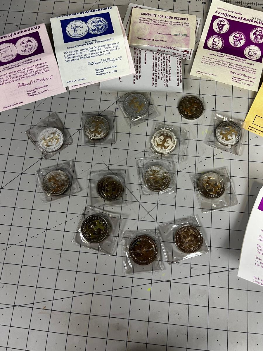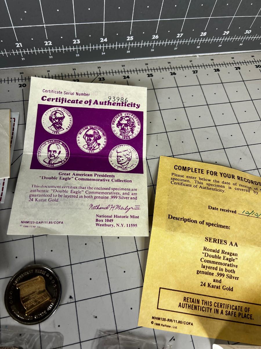US Presidential Double Eagle Coins Silver and Gold Clad .999 Silver and 24 K Gold