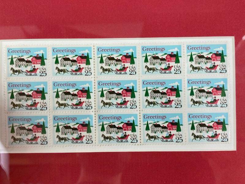 US STAMP - 1988 CHRISTMAS ONE HORSE SLEIGH #2400 FRAMED
