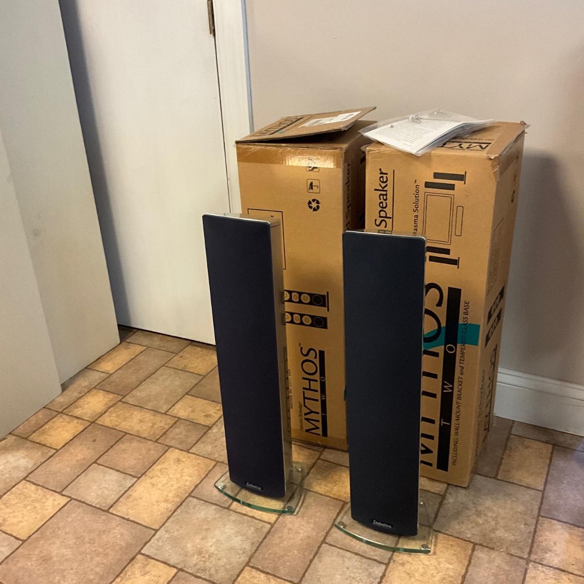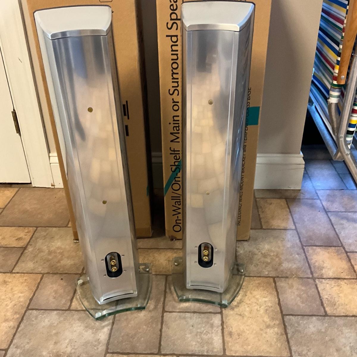 US1756 Pair of Definitive Technology Mythos II Aluminum Finish Speakers