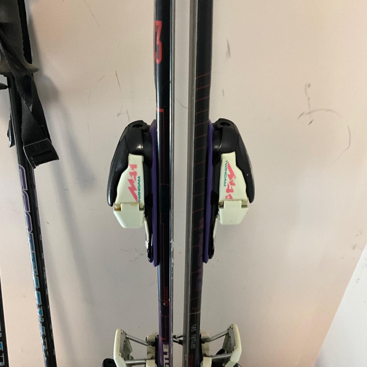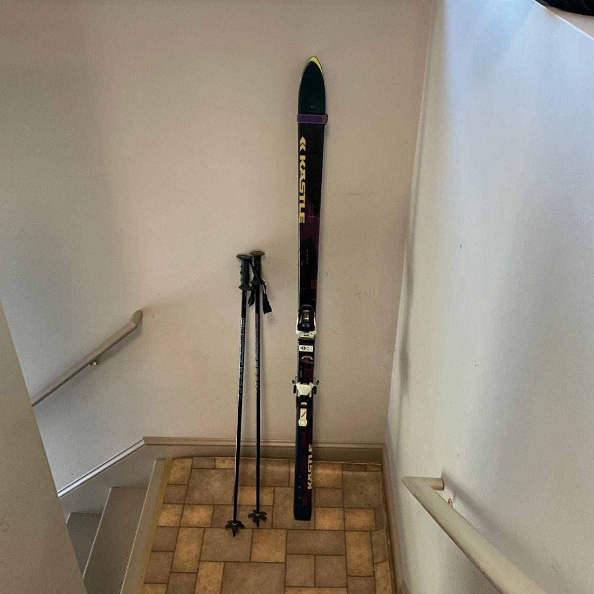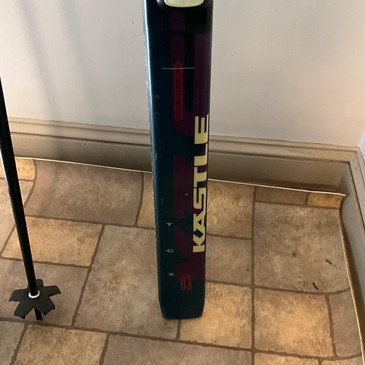 US1828 Pair of Vintage Kastle Syncap TCX Skis with poles