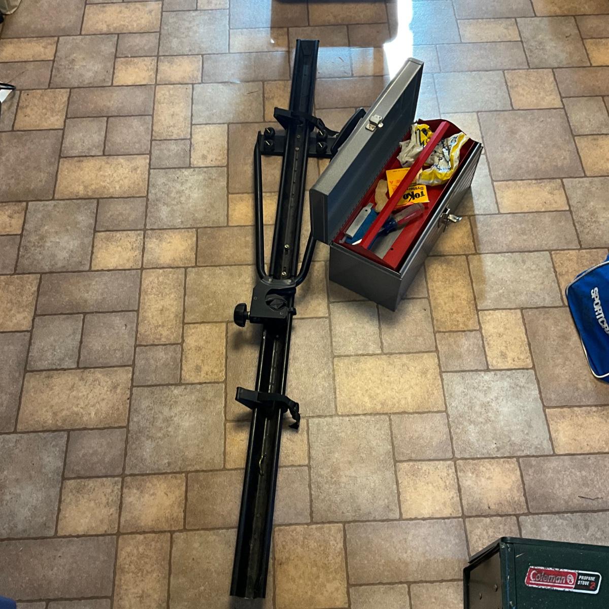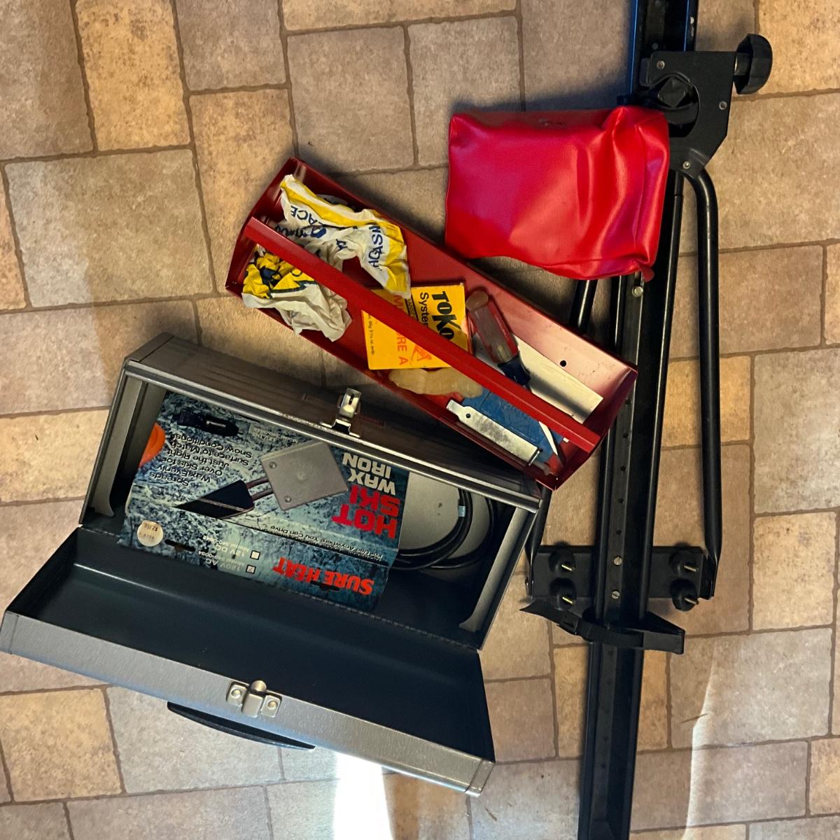 Thule metal Car Ski / Bike rack with Metal tool box with ski wax
