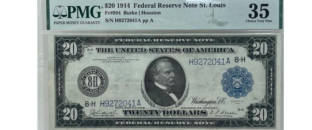 USA 1914 20 Dollar Federal Reserve Note St. Louis FR#994 PMG 35 Banknote