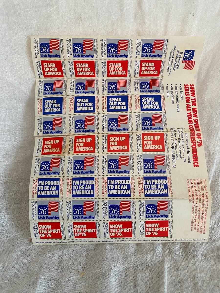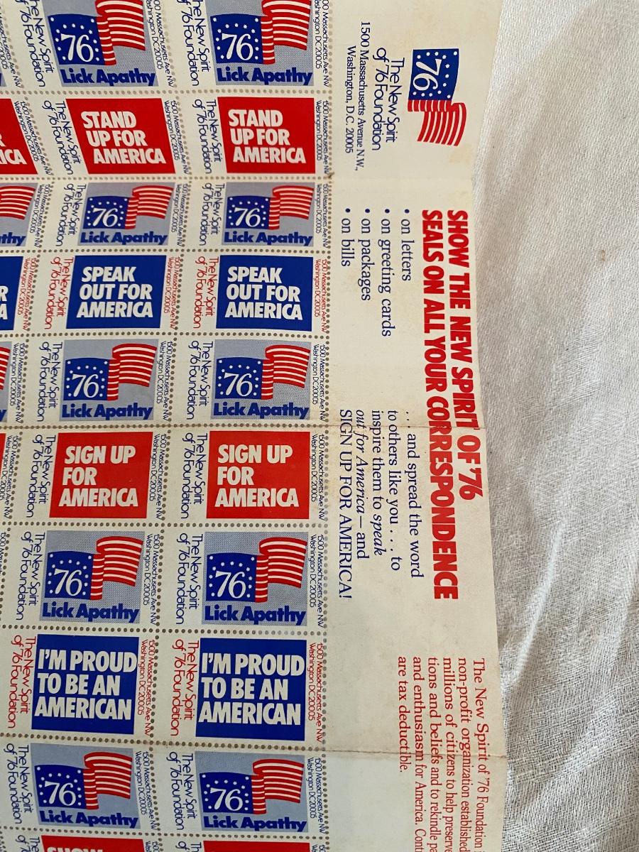 USA Cinderellas Poster Stamp Seal The New Spirit Foundation 1976 Lick Apathy. Slight perforation as shown in picture. 8x10