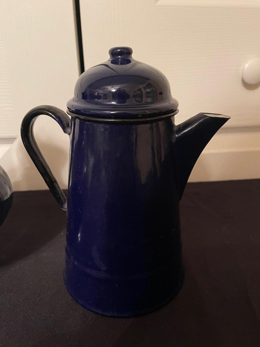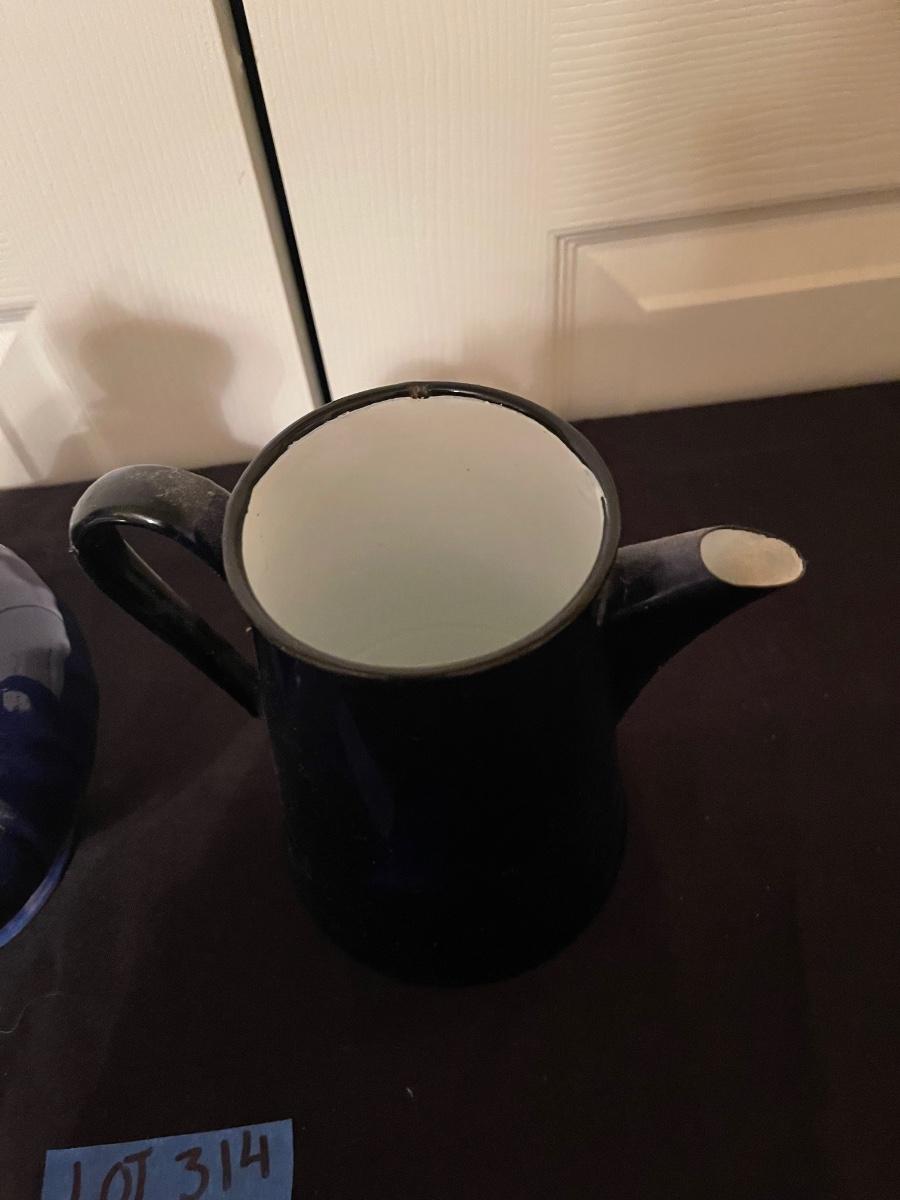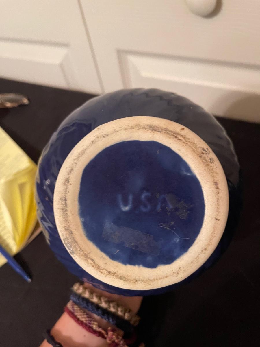 USA made vintage pottery pitcher with lid & blue pitcher