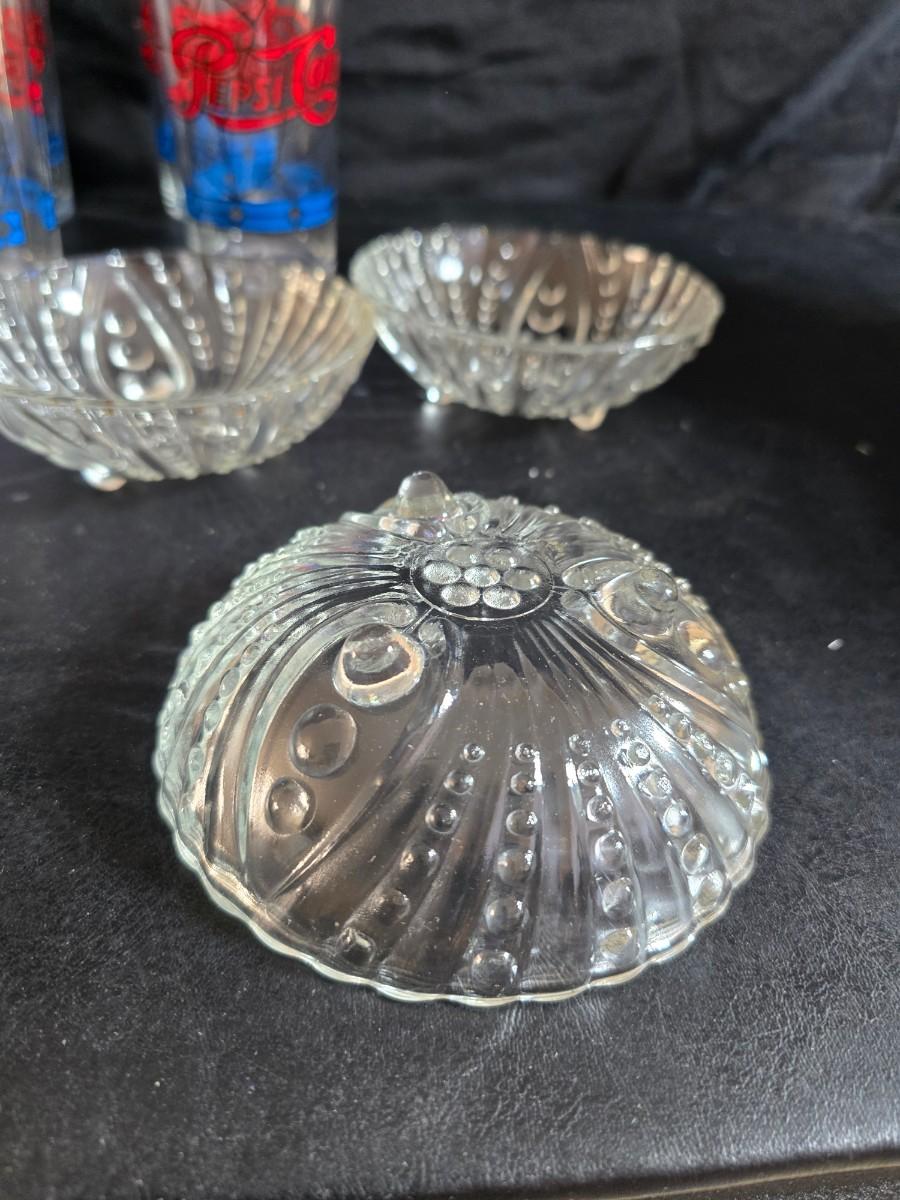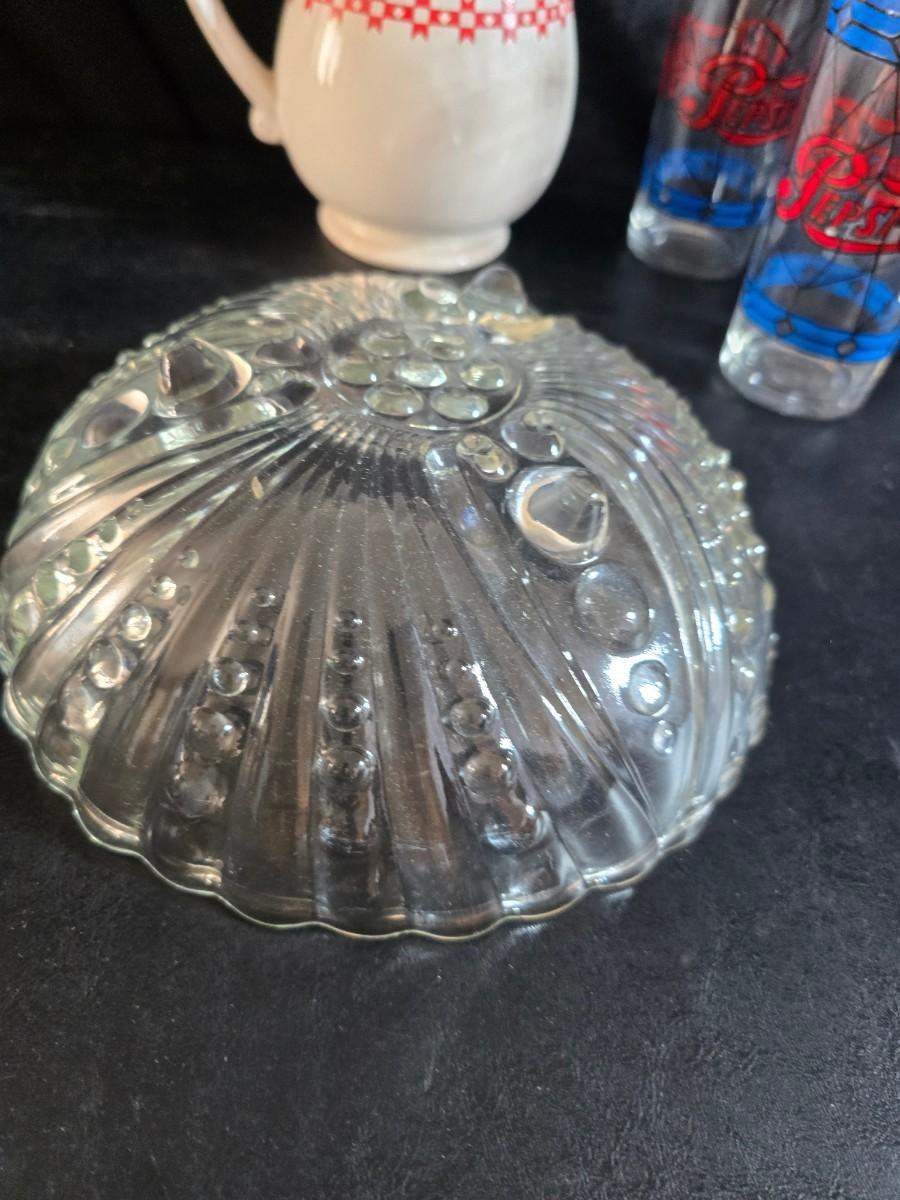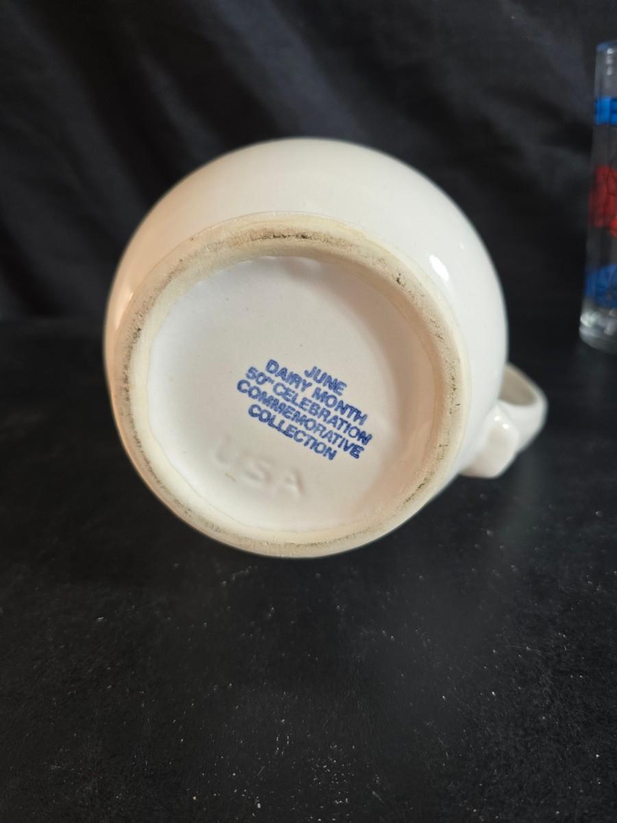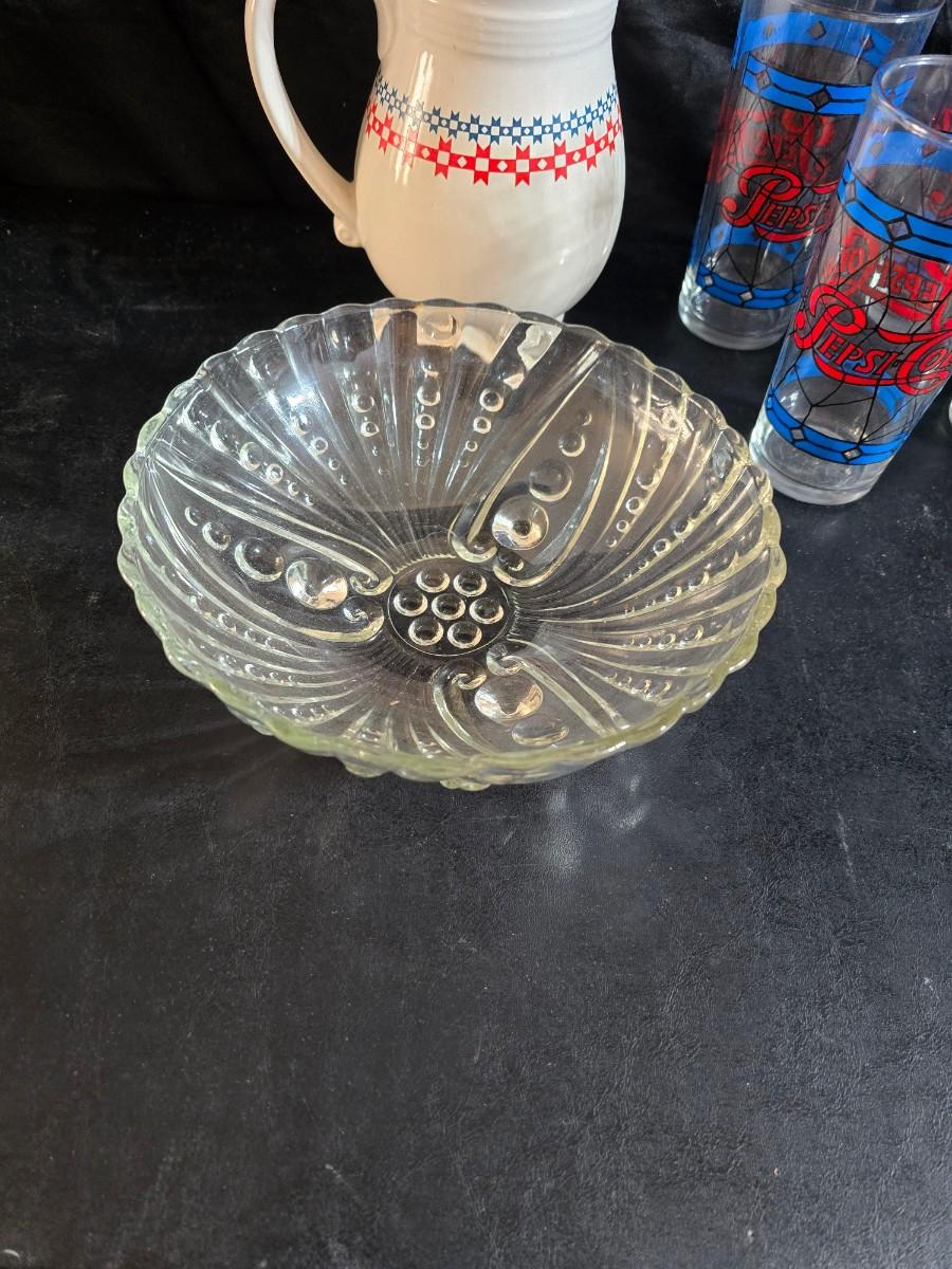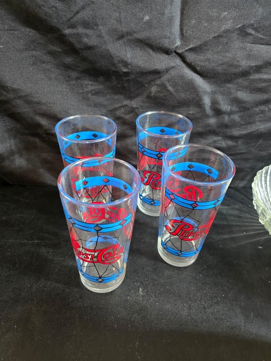 USA Marked commemorative dairy pitcher - with Pepsi-stained glass like glasses and vintage glass bowls