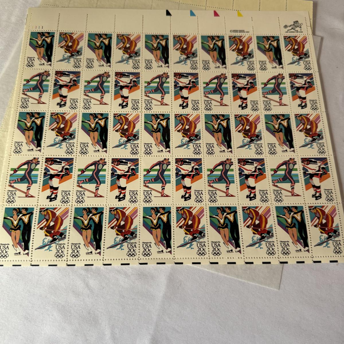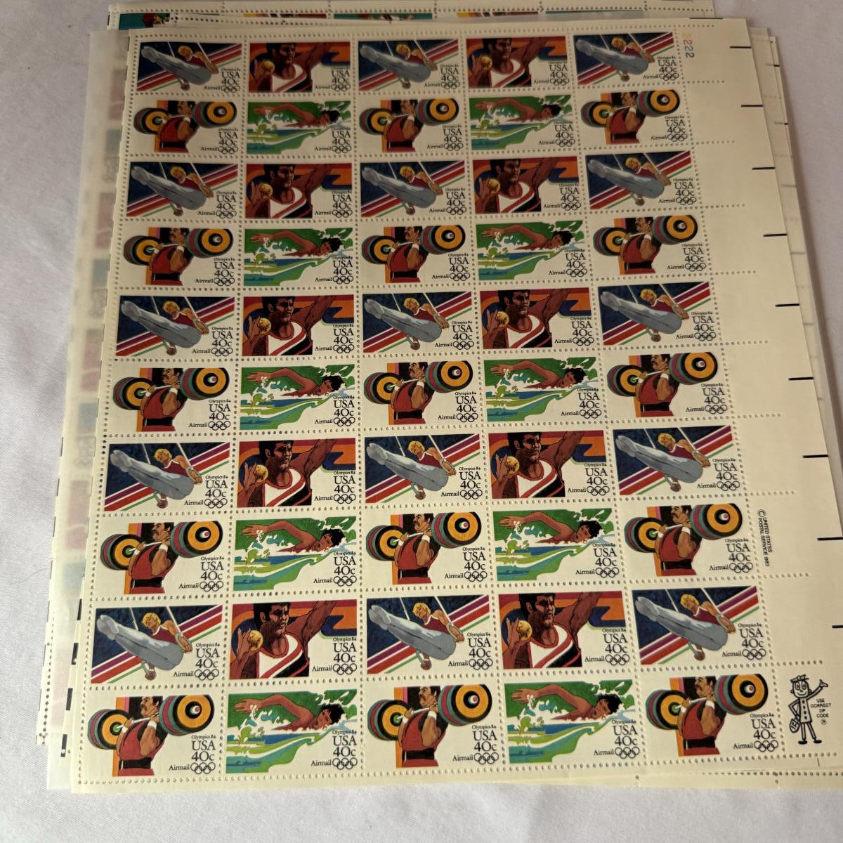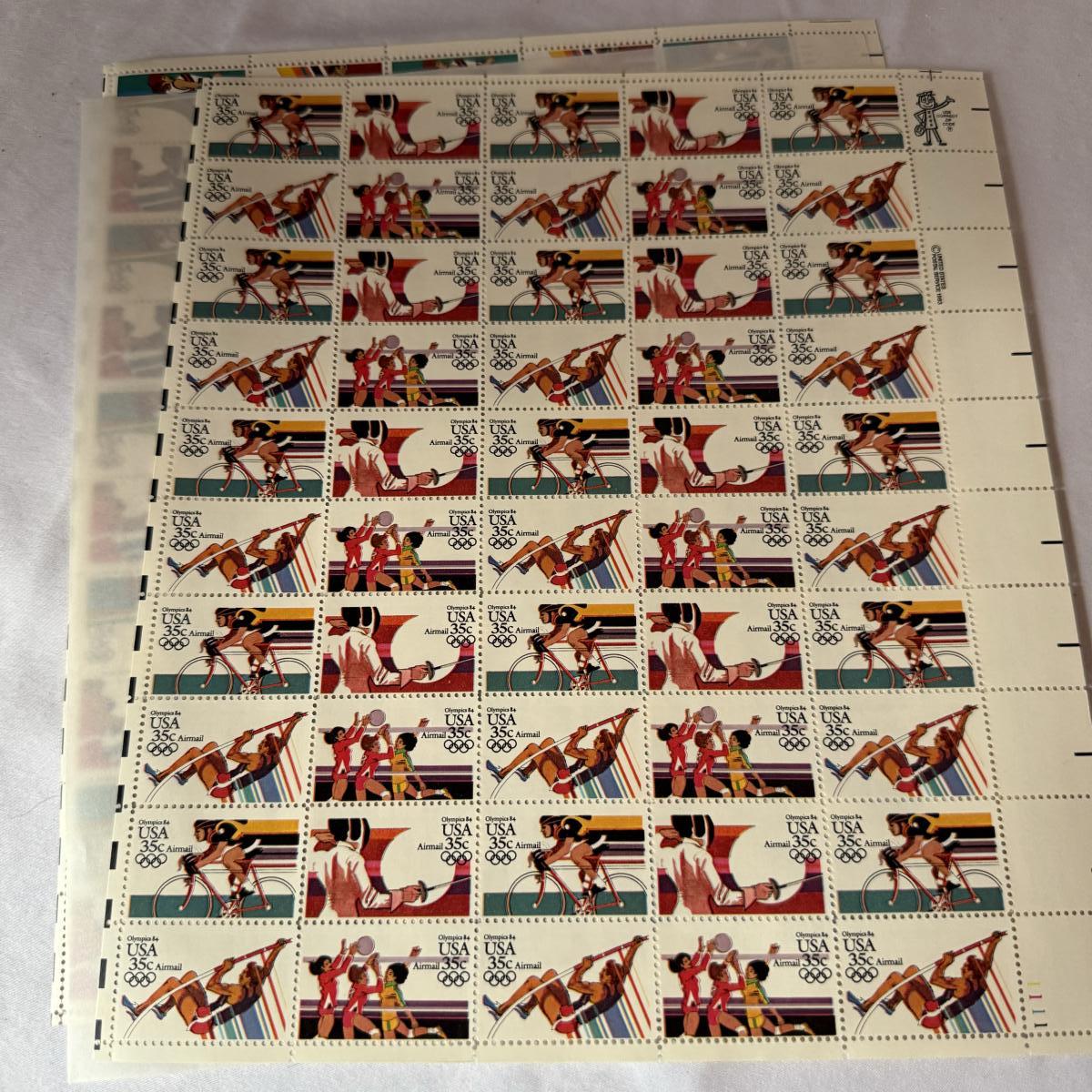 A large collection of full sheets of stamps, highlighted by Olympic sheets, animals, state specific selections and more. Please refer to the photos for details on all items included. All sales are final. No returns or refunds. Please bid accordingly.