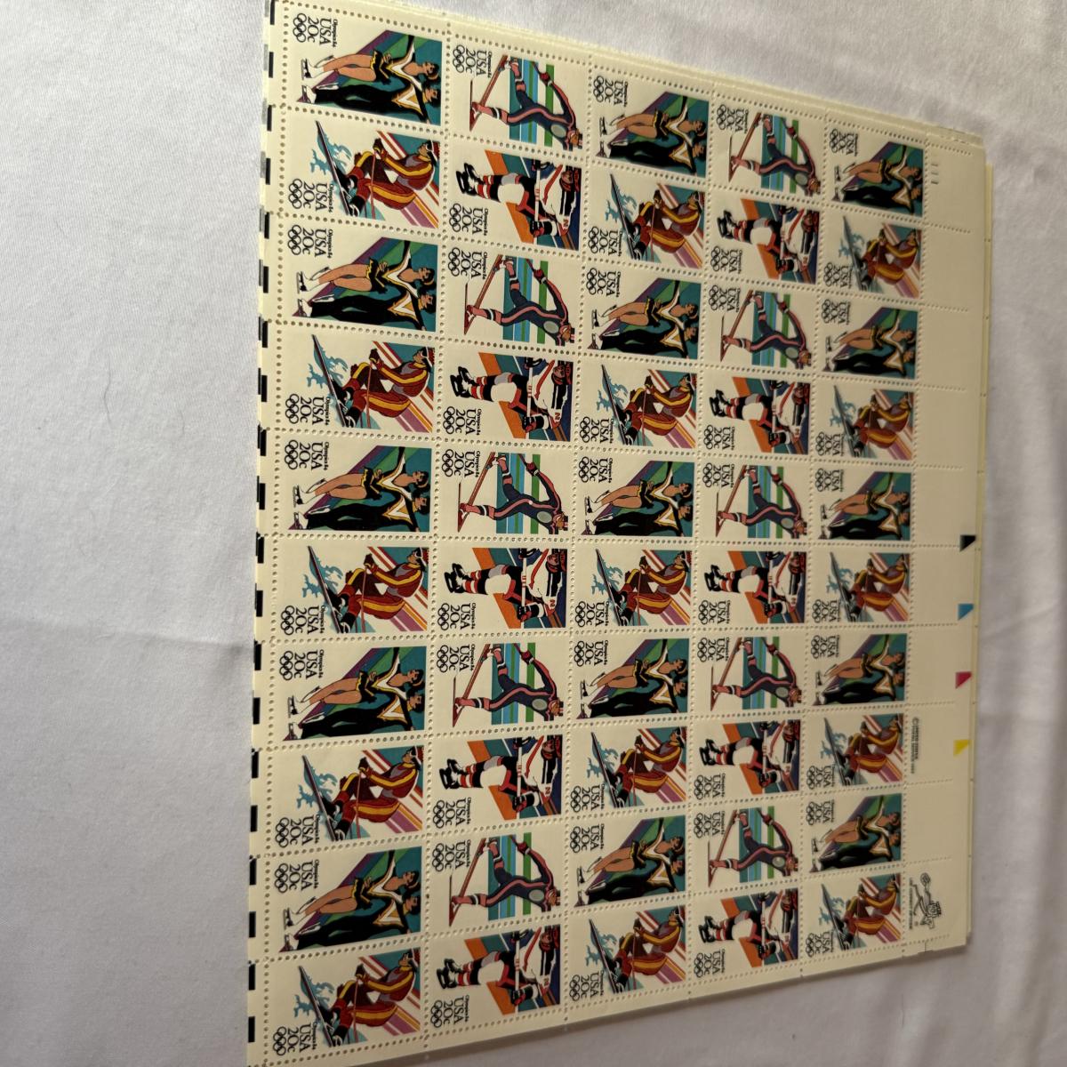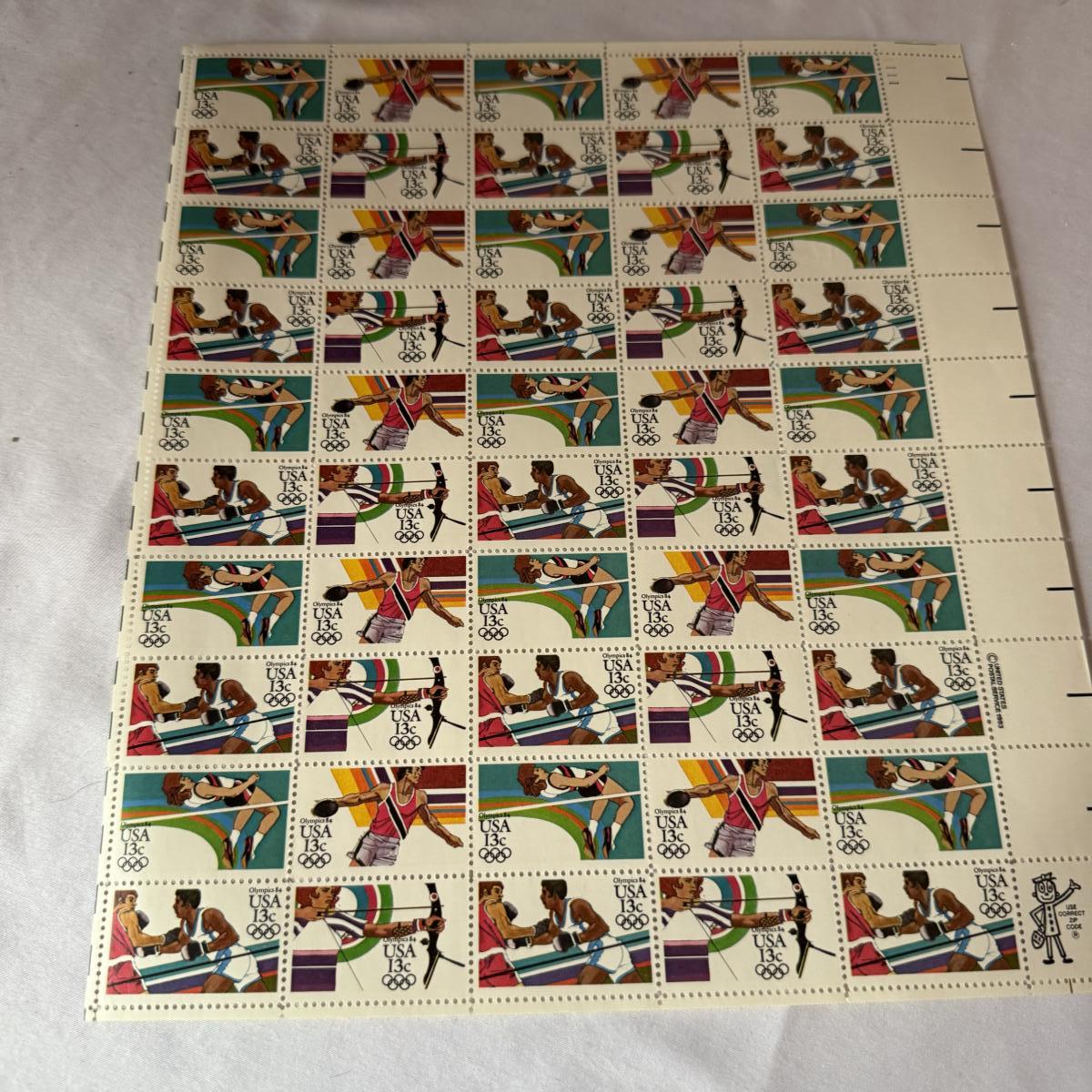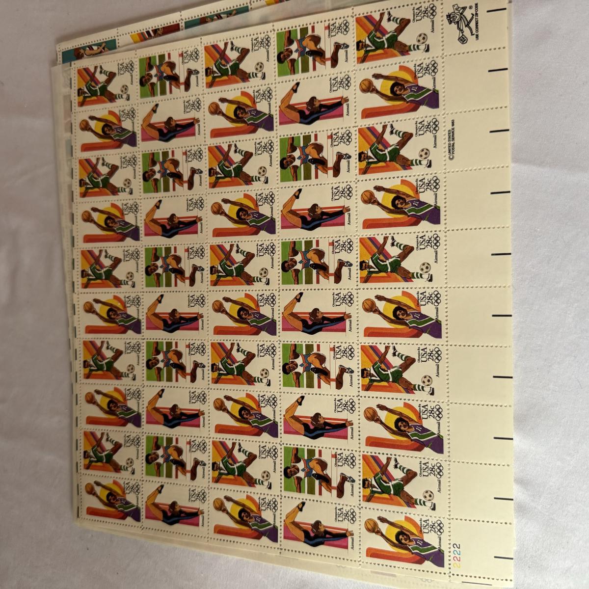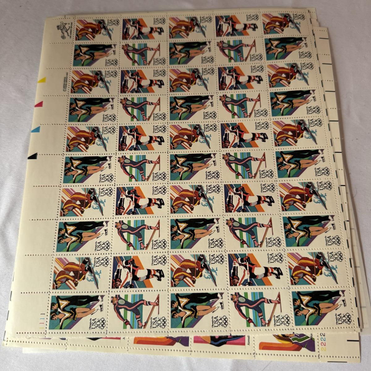 A large collection of full sheets of stamps, highlighted by Olympic sheets, animals, state specific selections and more. Please refer to the photos for details on all items included. All sales are final. No returns or refunds. Please bid accordingly.