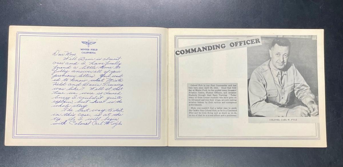 Paper bound booklet with names and photos of the 1943 basic flight training class at Minter Field, California. Excellent condition considering it is over 80 years old.