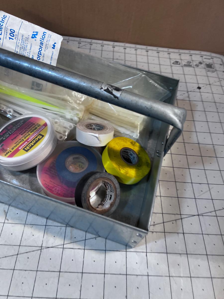 Used and Usable. Metal Tote with Zip Ties and Tape