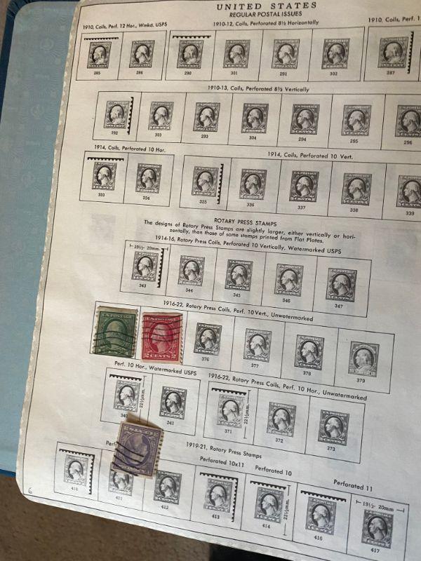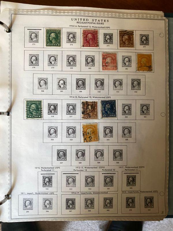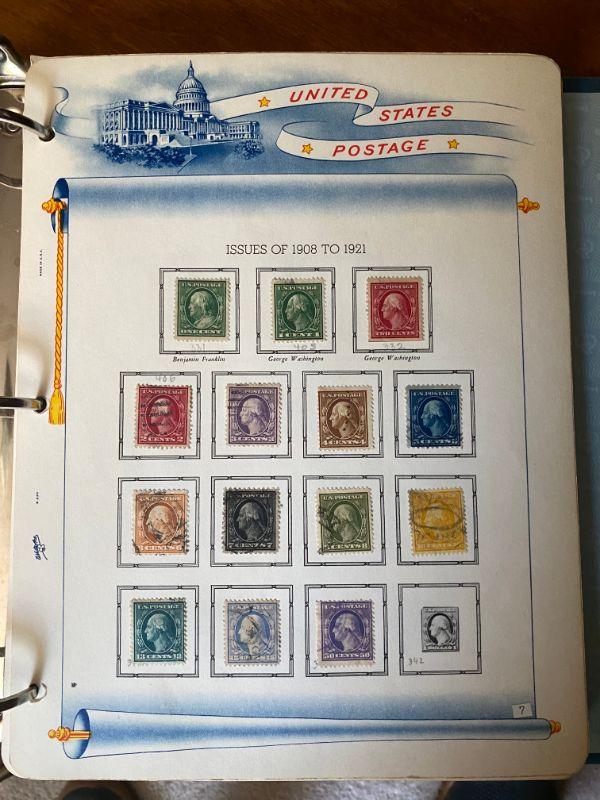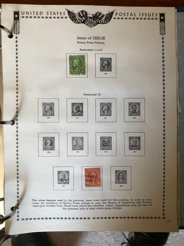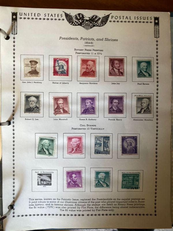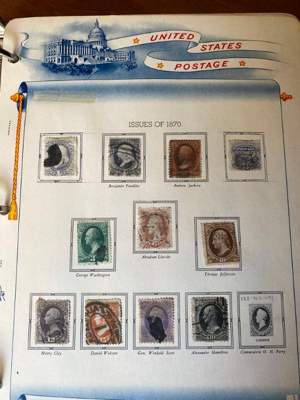 This binder contains various used, post marked, collectible stamps through the years 1870 - 1964