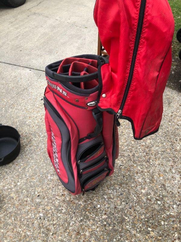 Golf bag with cover, has some worn spots but still in usable shape. Must be picked up in Broussard, LA