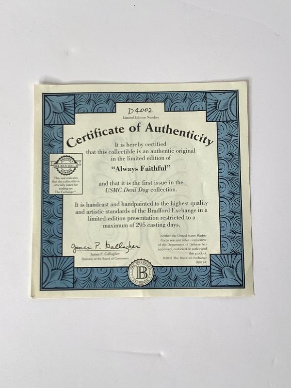 USMC Devil Dog -(Bradford Exchange) "Always Faithfull"  New