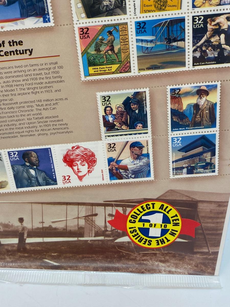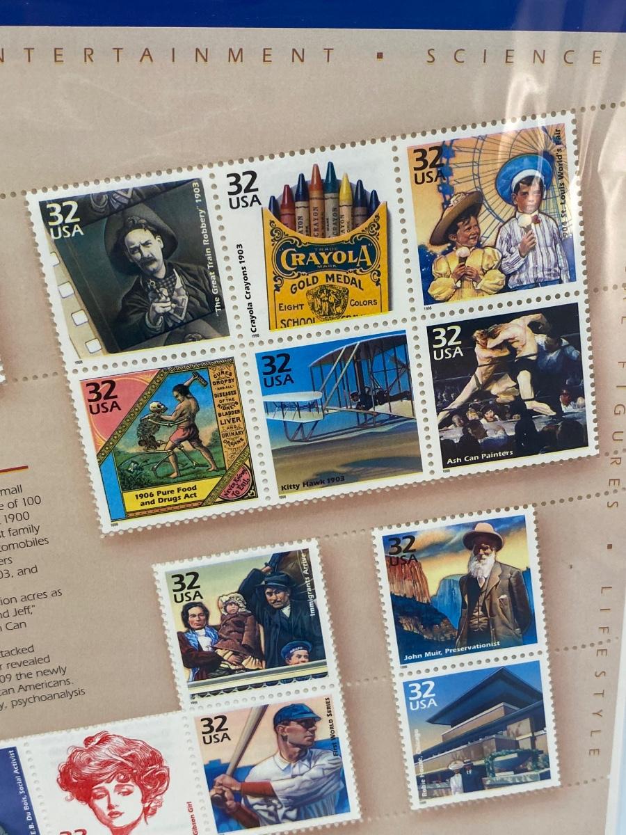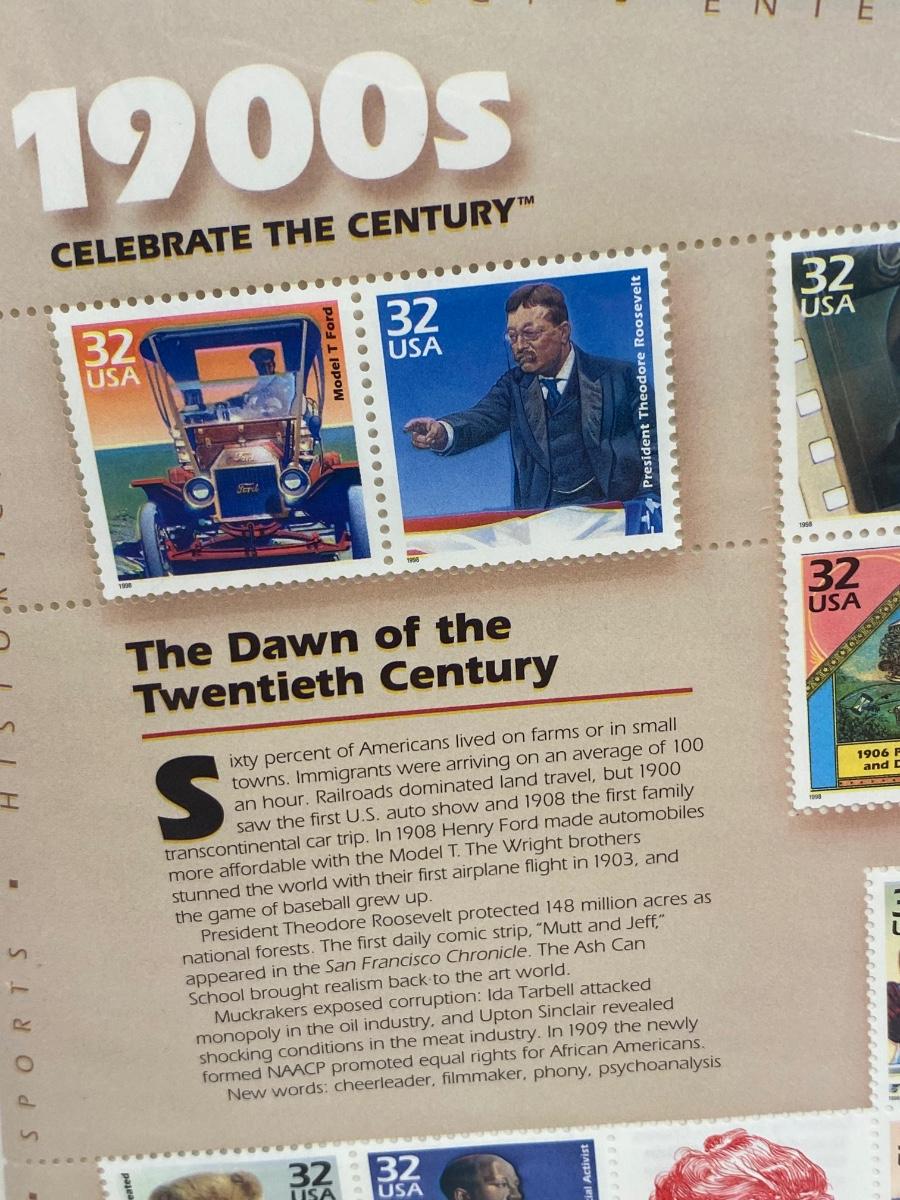 USPS Celebrate the Century 1900s Collector Postage Stamp Sheet. In plastic.