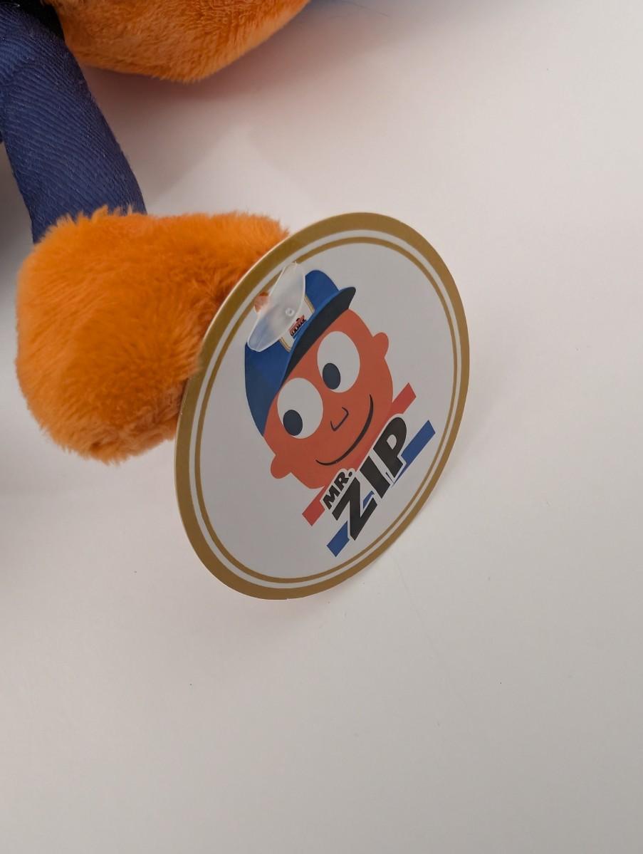 Official USPS plush of Mr. Zip, the classic postal service mascot. This collectible features bright orange plush, a blue cap, and a US Mail satchel, complete with licensed USPS tag. A nostalgic advertising character and fun addition for postal memorabilia collectors, vintage mascot fans, or plush toy enthusiasts.