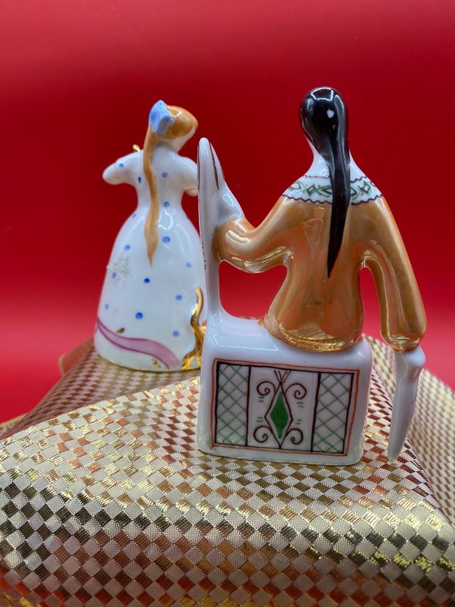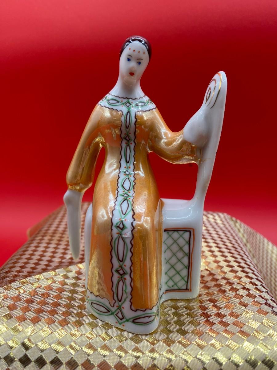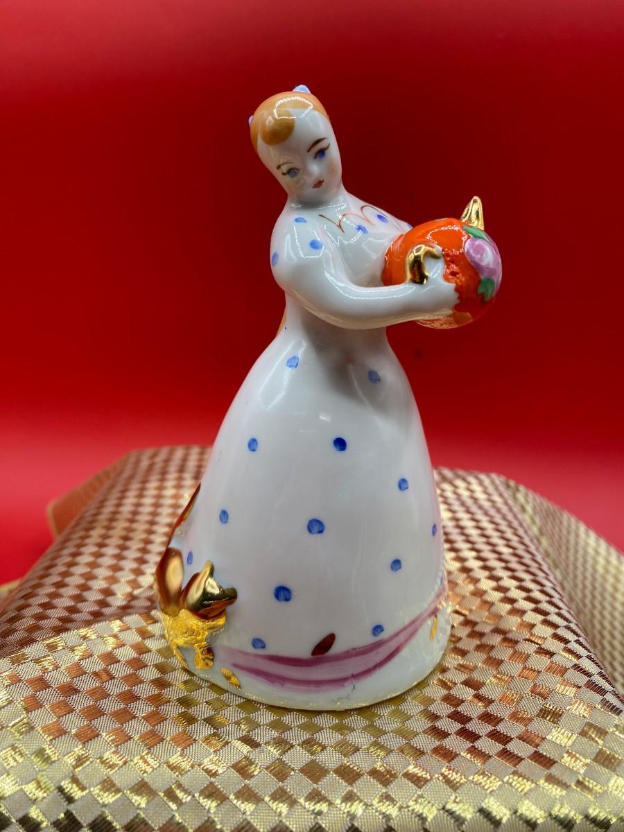 Dulevo girl with teapot with gold cat - vintage 1960s. Made in Soviet Union