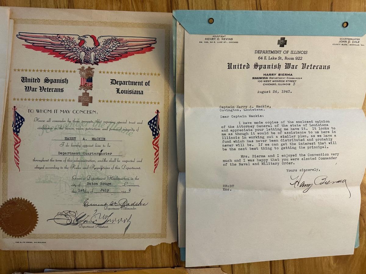 USWV, Captain Harry A. Mackie Speeches, Clippings, Letters