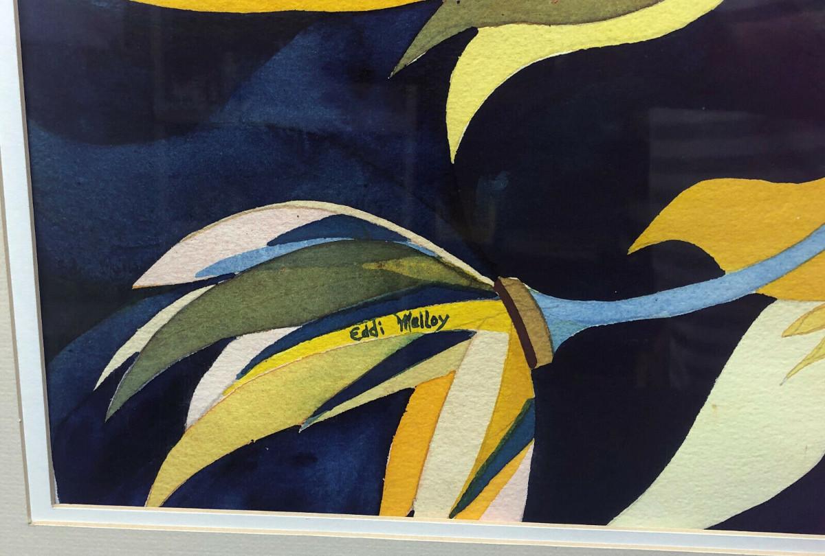 From well-known Utah artist Eddi Malloy...here is an original watercolor...this bursting floral painting is 26.5 x 18.5"..framed and matted 36.5 x 28.25"...Good condition...Signed...The shipping is based on the frame size and weight...if you wish we will send just the painting...Let us know your choice and the shipping will be adjusted accordingly...Please note some reflections in photos...This estate find is offered with no reserve...