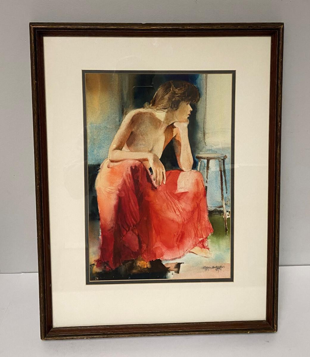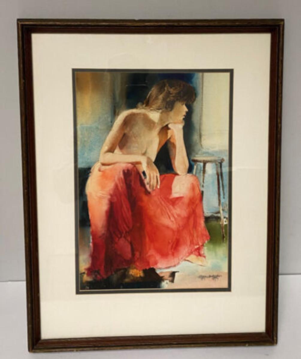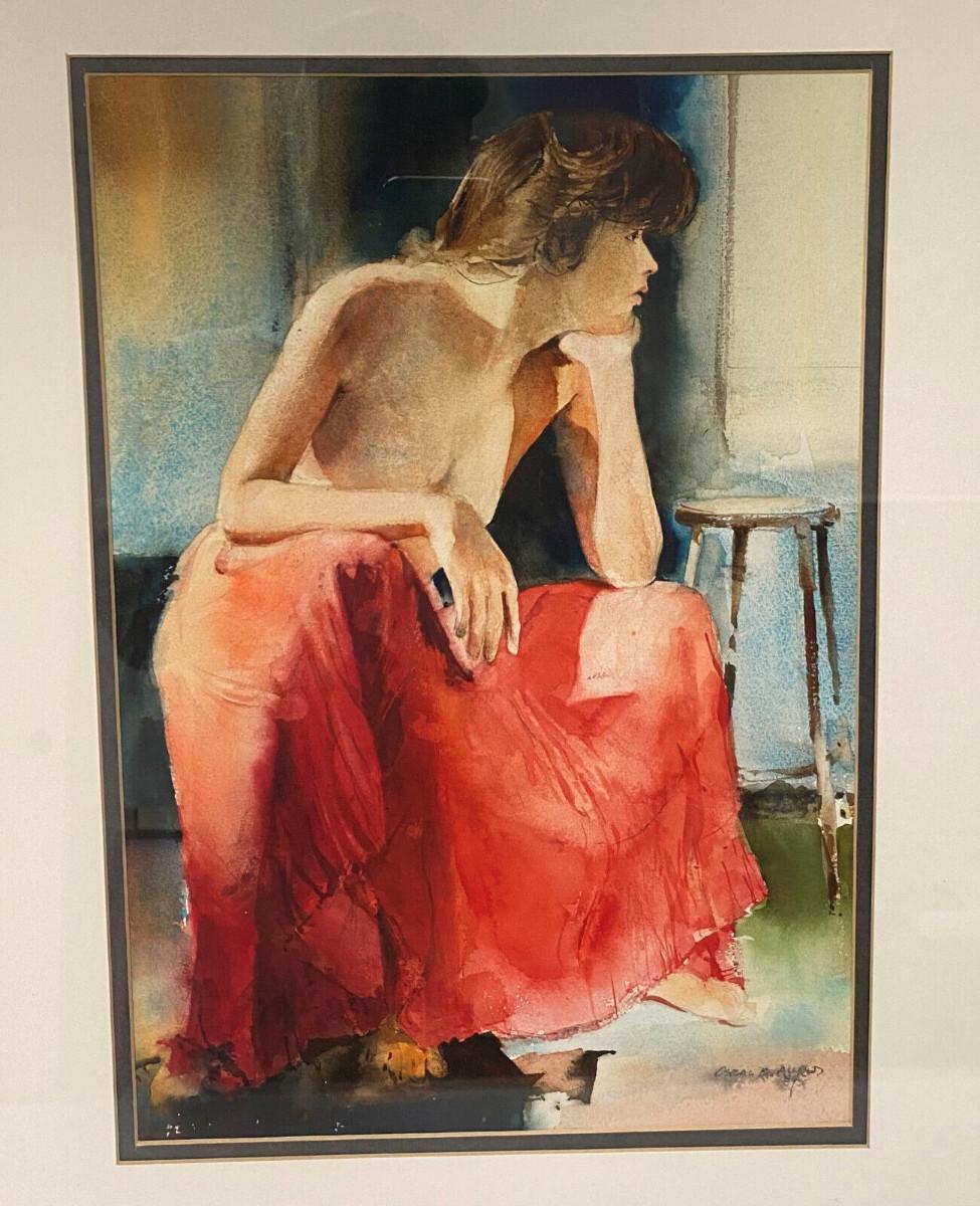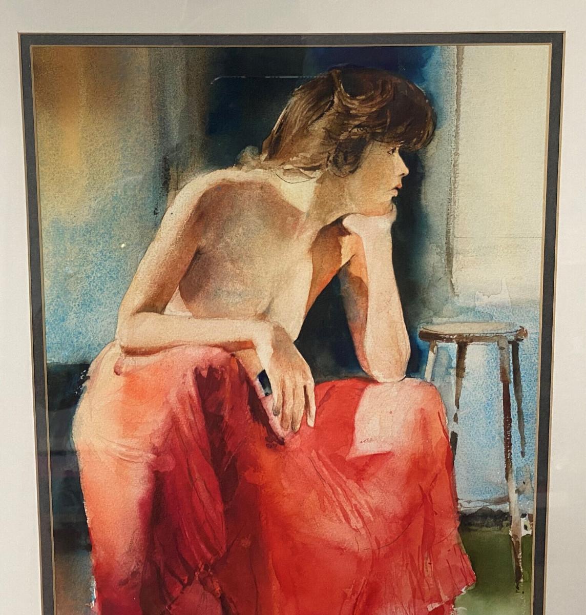 UTAH ARTIST OSRAL B. ALLRED "THE POSE" WATERCOLOR SIGNED