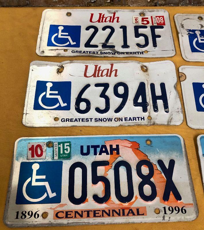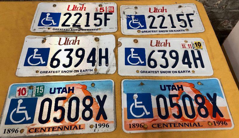 3 sets of Utah Handicap license plates...Ski Utah and Arches...