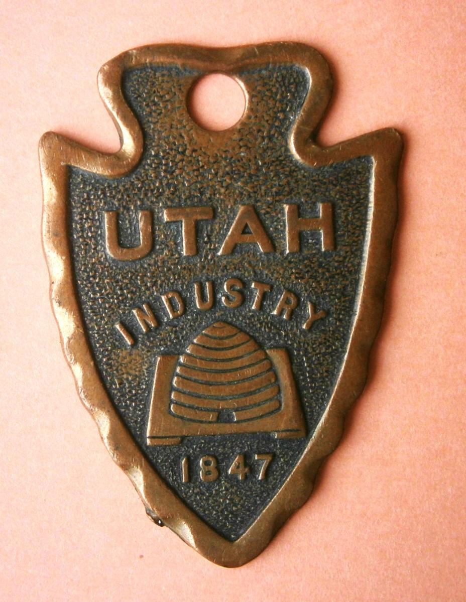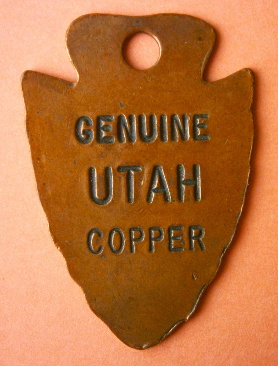 "UTAH INDUSTRY 1847" Genuine UTAH Copper Figural Arrowhead Keychain Fob from the early 1900's