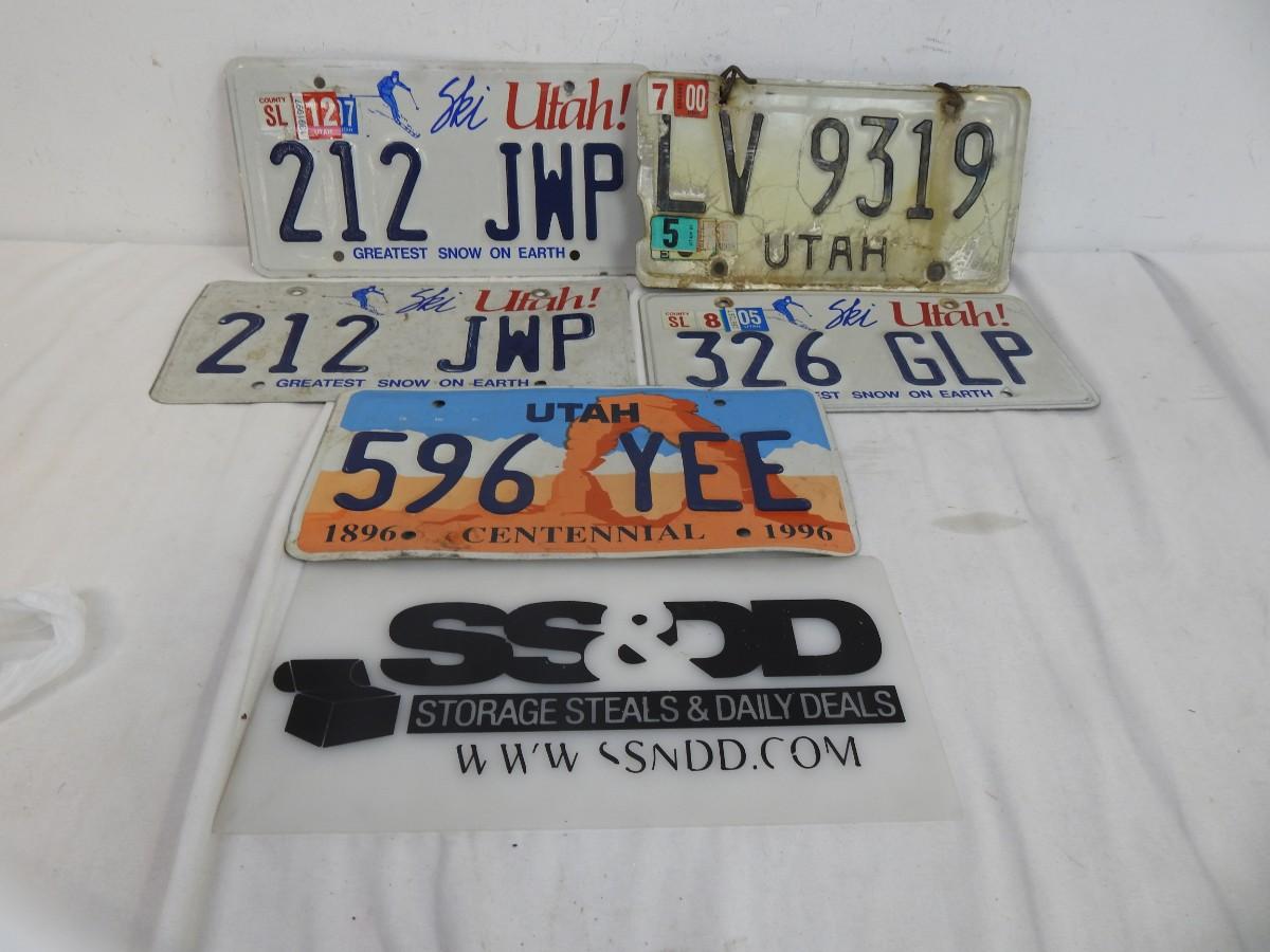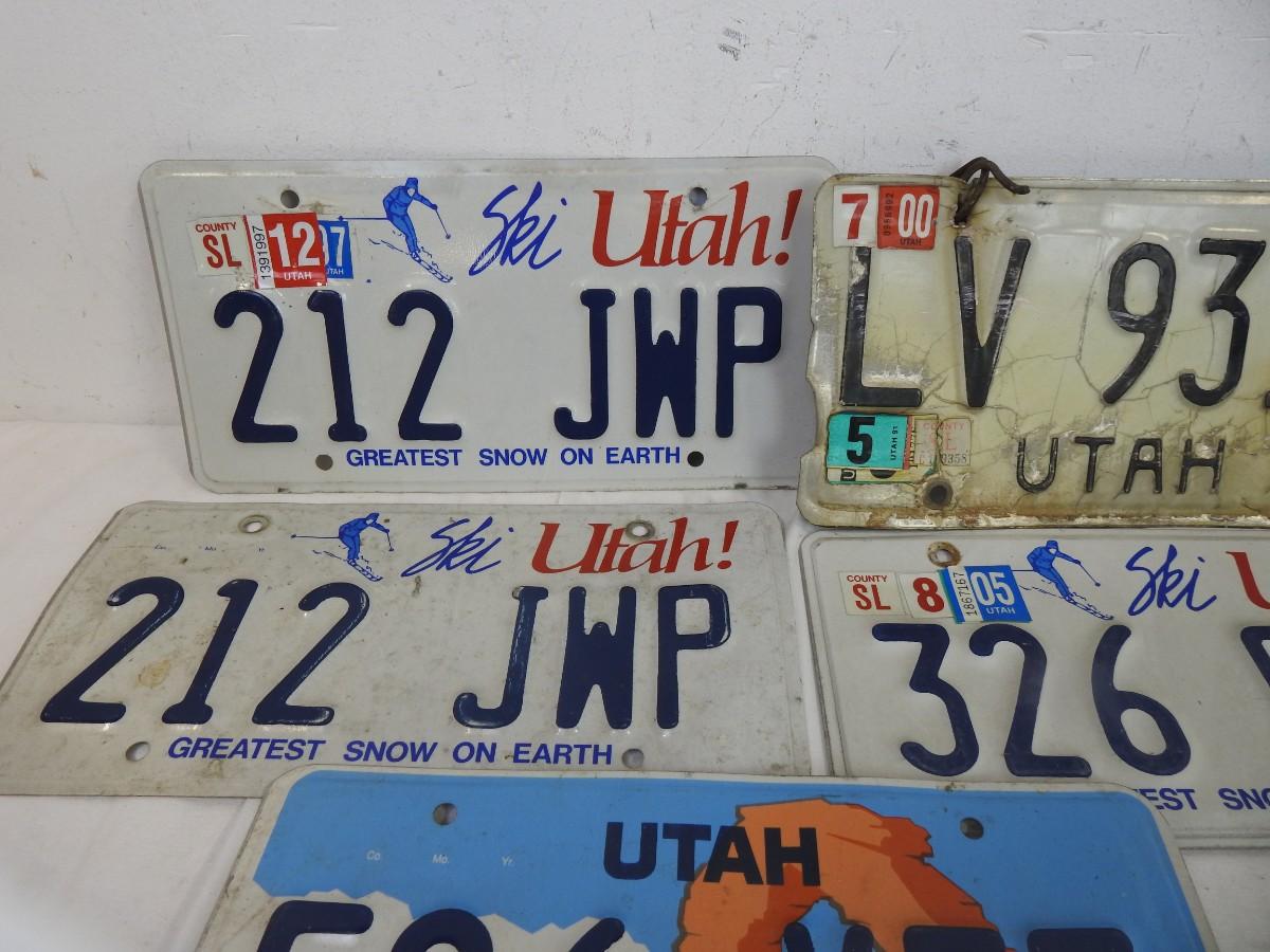 Utah LIcense plates : 5 various styles, Centennial, 1 black & white Vintage?