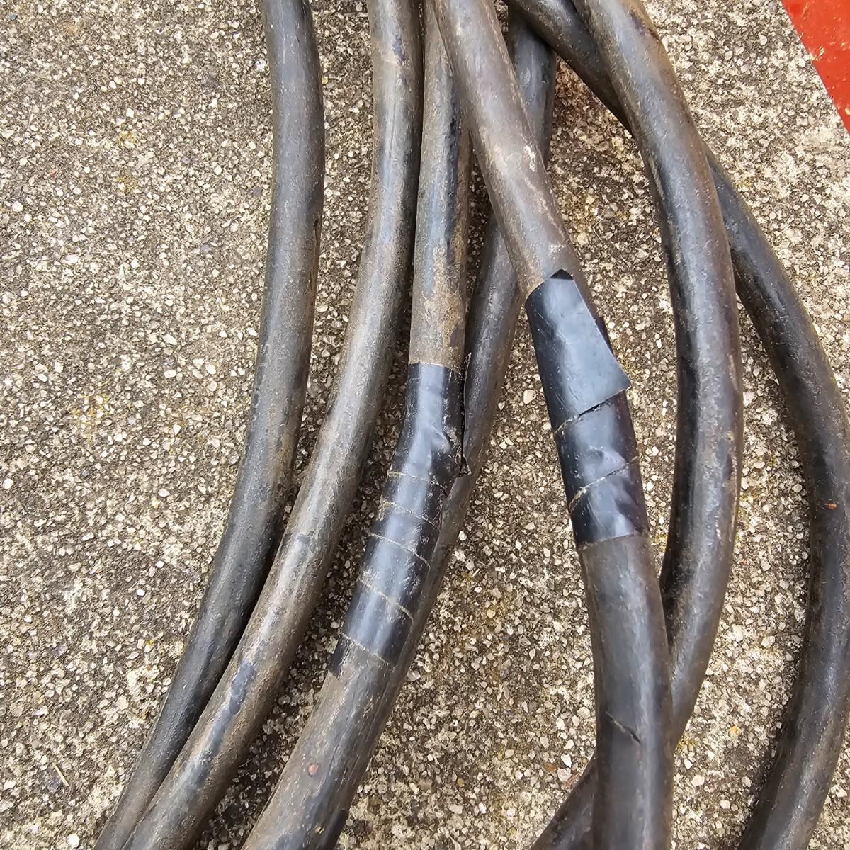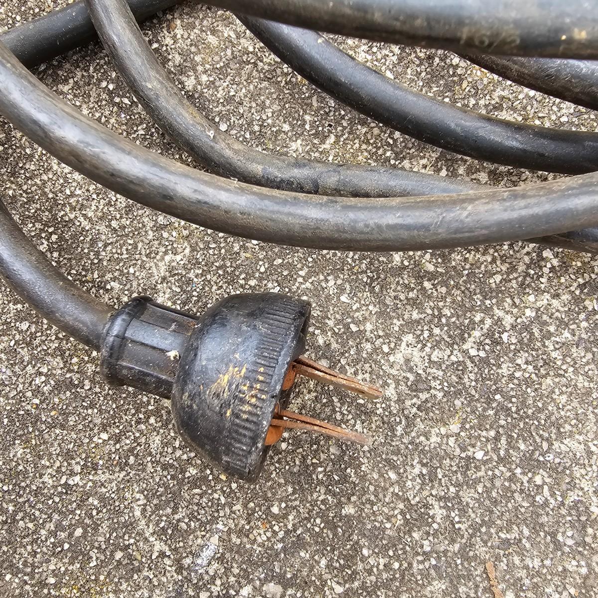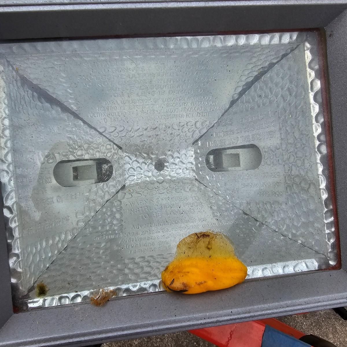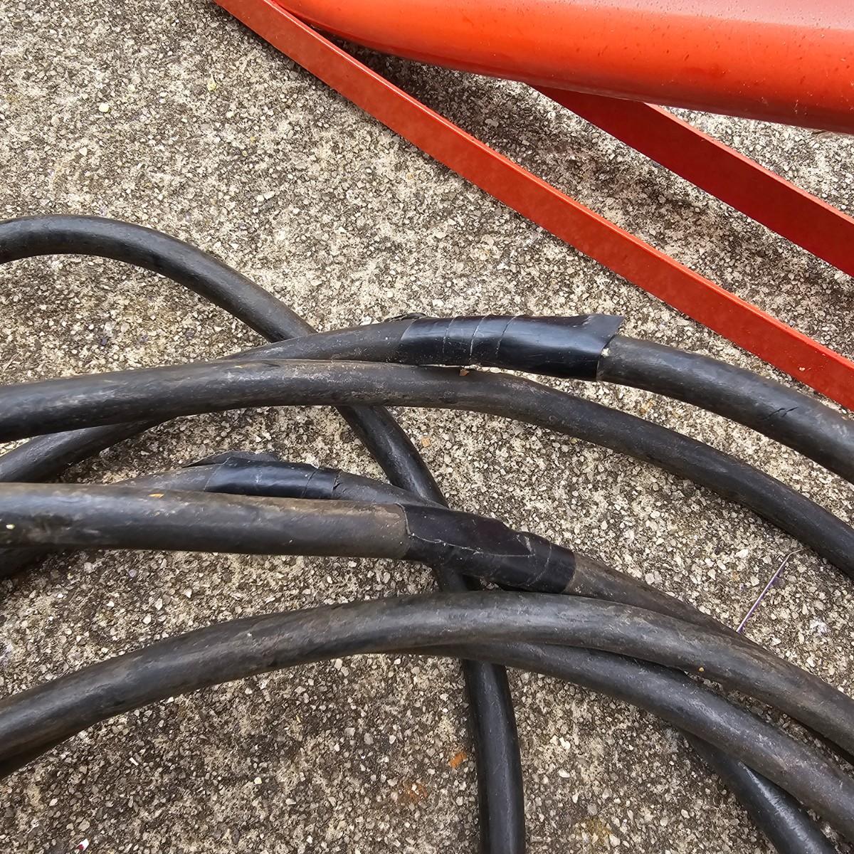 Double halogen work lights on adjustable stand. By Utilitech, lights can swivel and pivot as well as elevate by center pole. Unit is 34"D x 37"to 70"H. One leg on stand damaged and only one bulb in lights. Lamps powered on when plugged in. Also includes three standard trouble lights with cords. Two orange lights are newer with three-way plug, black light is older two prong plug, has several patches in cord. All items powered on when plugged in. See photos for details. Local pickup only.