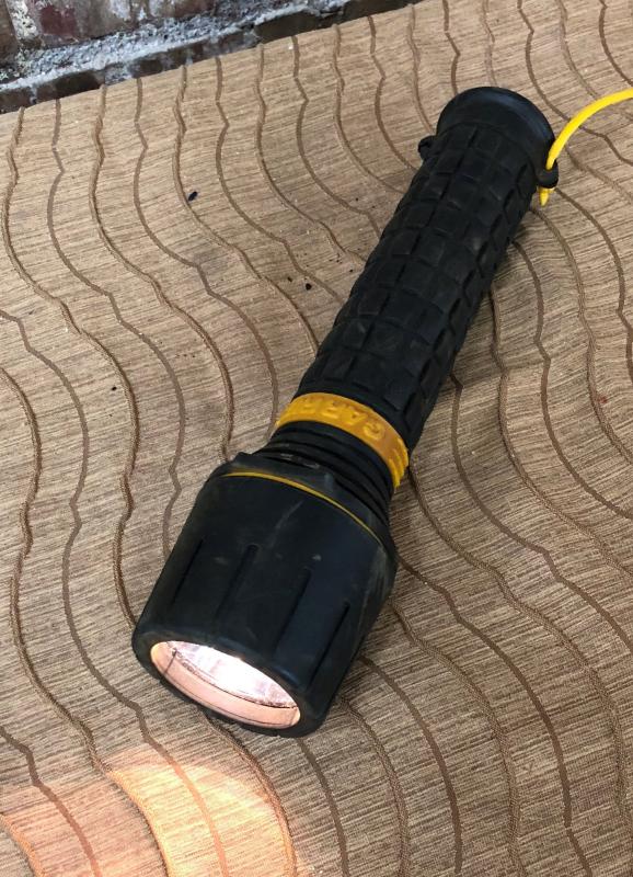 From Garrity-Madison here is a rubber coated utility flashlight...Working condition...
