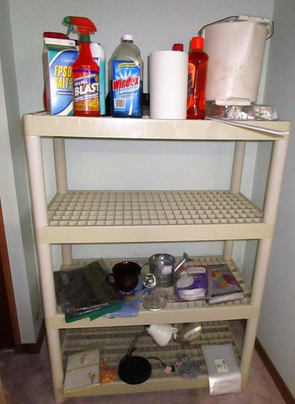 Sturdy Shelving with household supplies included