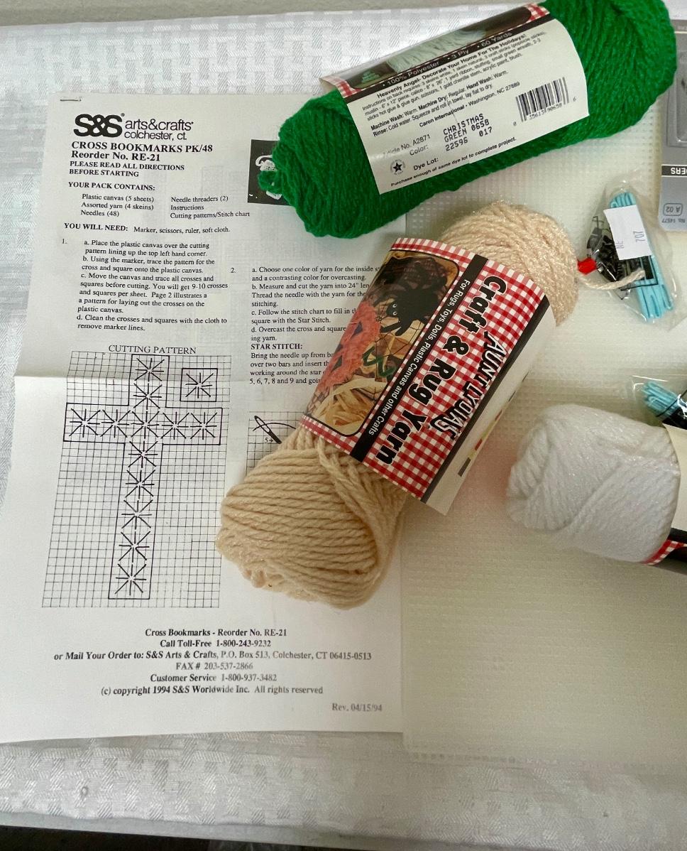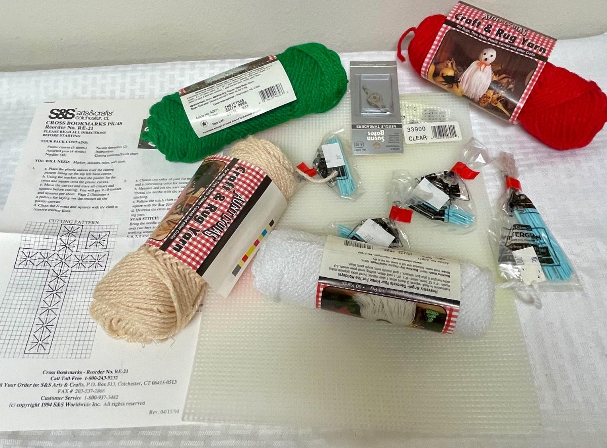 Yarn & Plastic Canvas Lot with instructions for a Cross shaped Bookmark