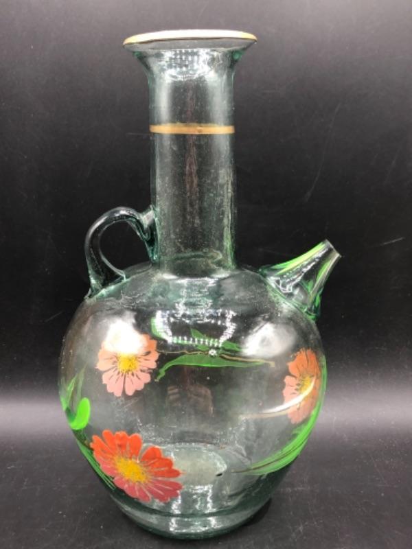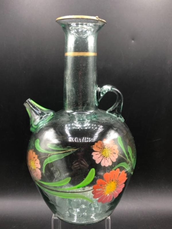 Vintage Floral Painted Glass Pitcher YD#011-1120-00298