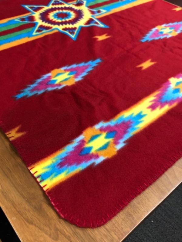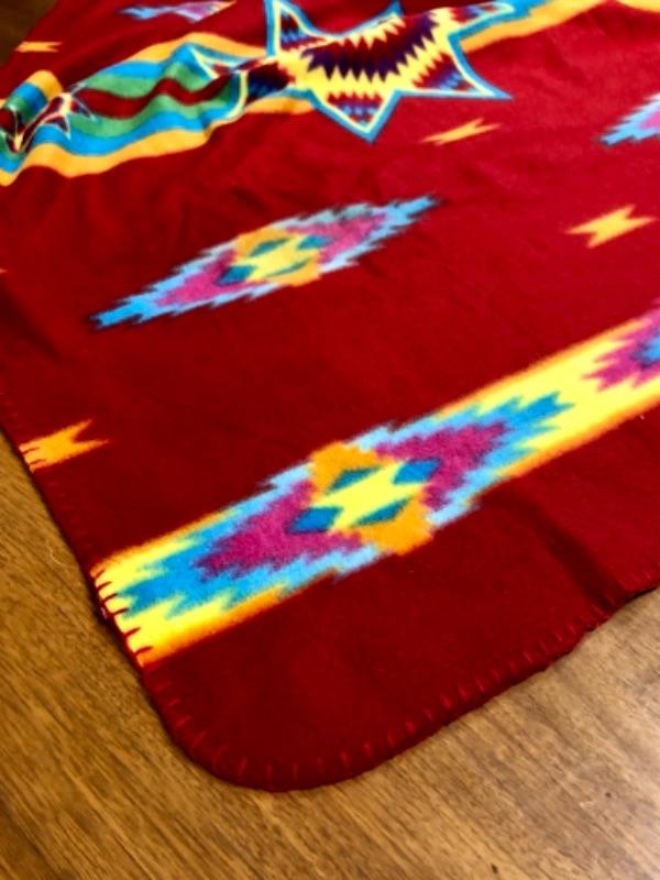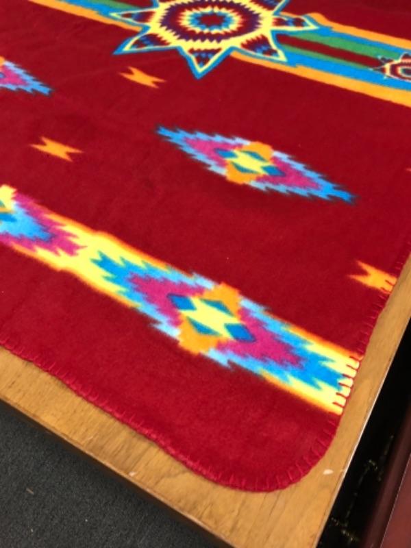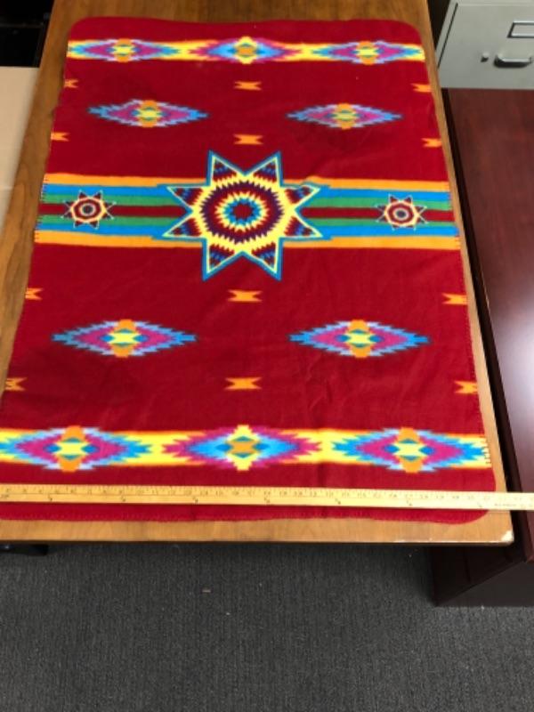 Colorful fleece throw with Geometric Indian Pattern 100% polyester.