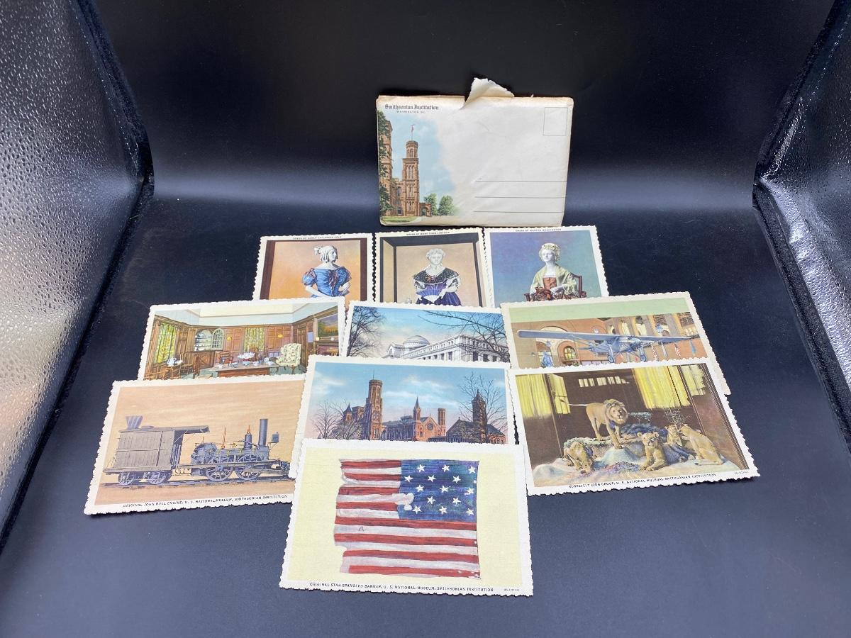 Set of 10 Vintage Smithsonian Institution Souvenir Postcards, Unused. Come with envelope. Envelope is torn a little. Postcards are in good vintage condition.