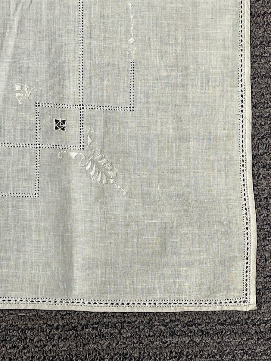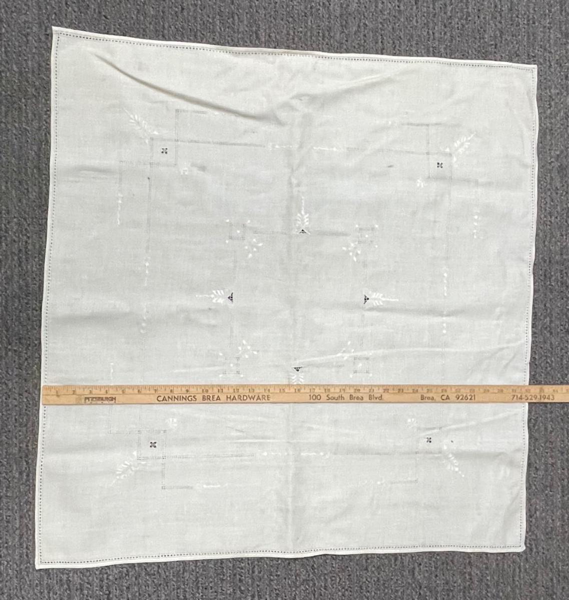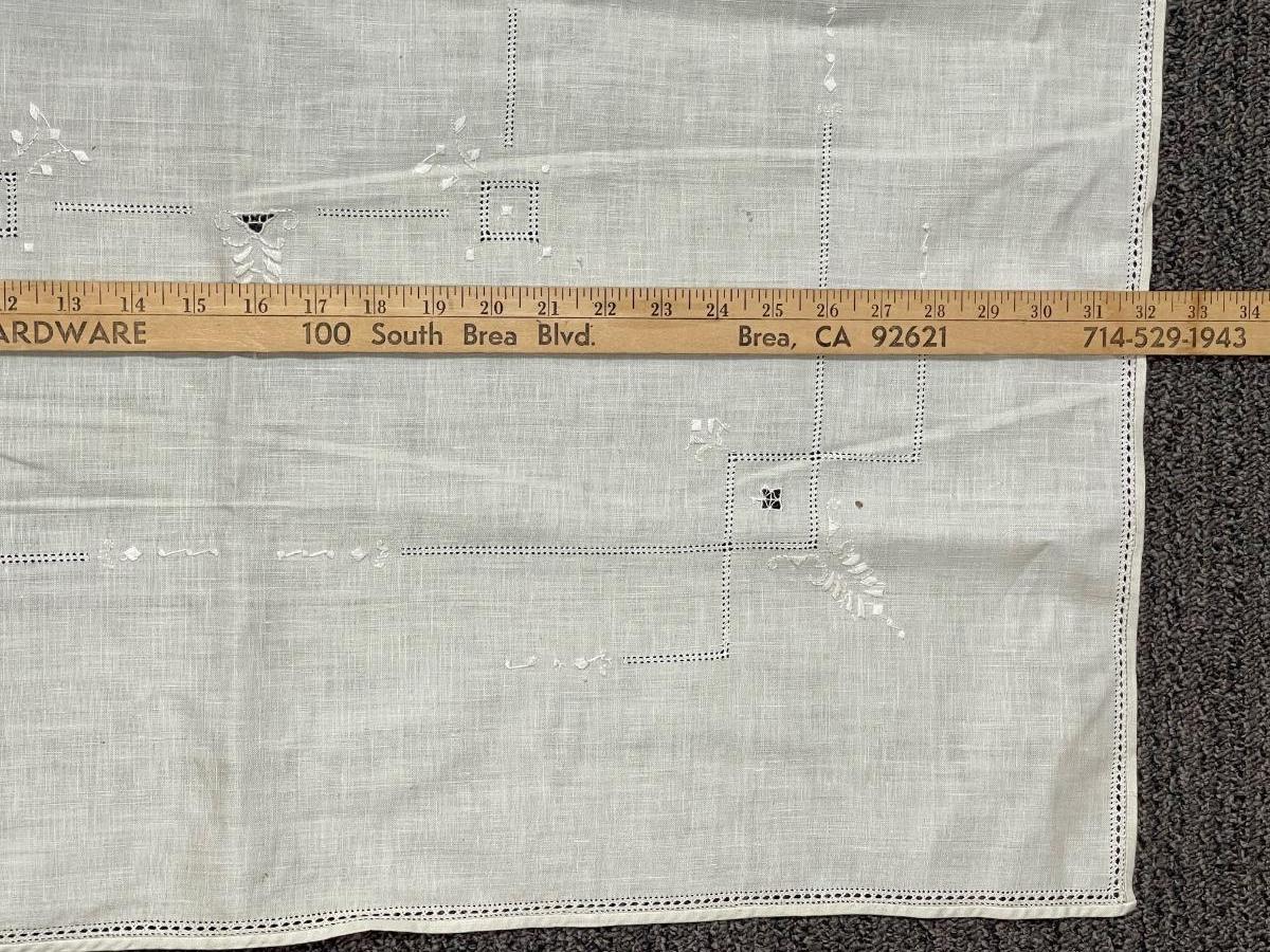 Square Vintage Card Table Tablecloth Off White Embroidered Open Work Design