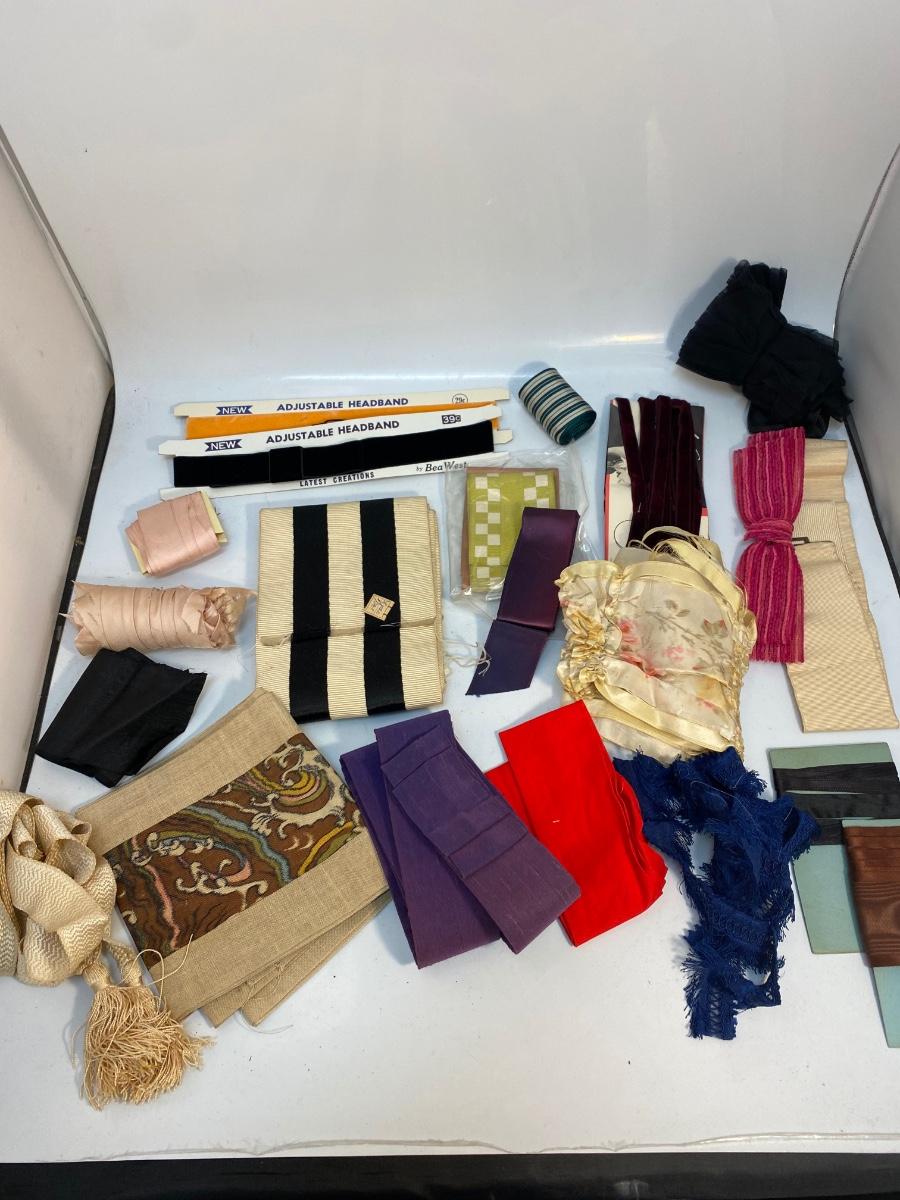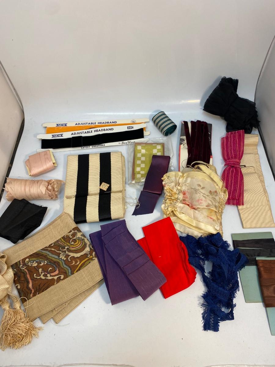 Mixed Lot of Vintage Fabric Ribbon Trim Sashes Pieces. Great for crafts and repurposing.